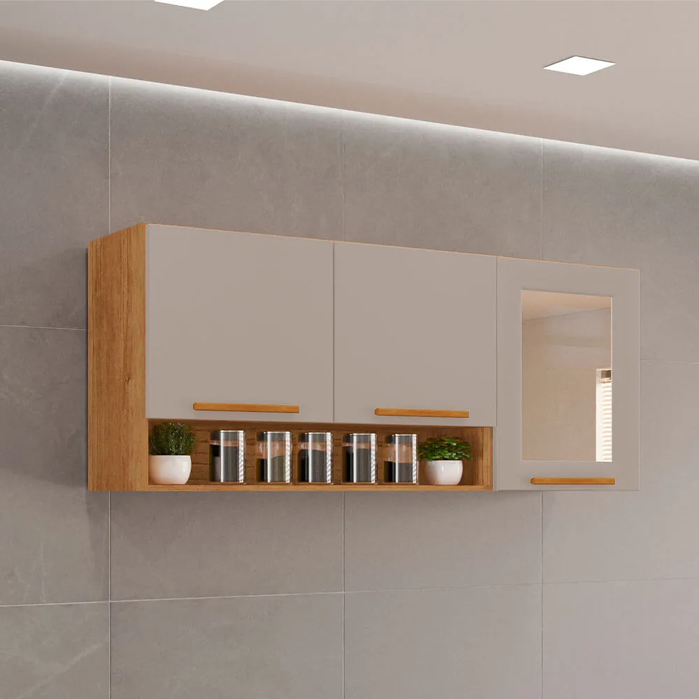 Armário Aereo 3 Portas Reflecta New Valencia Salleto Cinamomo – Off White