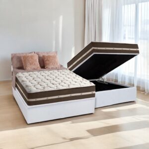 Colchão Casal Classic Superlastic Marrom + Base Baú Avalon Branco – ANJOS + AVALON