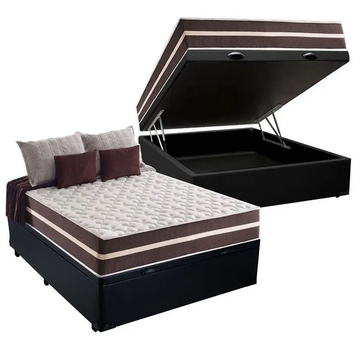 Colchão Casal Classic Superlastic Marrom + Base Baú Avalon Preto – ANJOS + AVALON