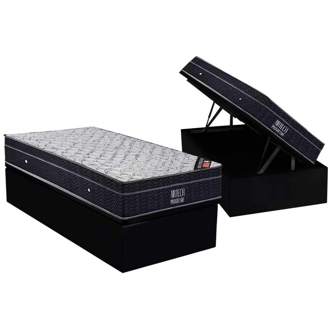 Colchão Solteiro Airtech Progressive D26 + Base Box Baú Biostar Preto – ORTOBOM + BIOSTAR