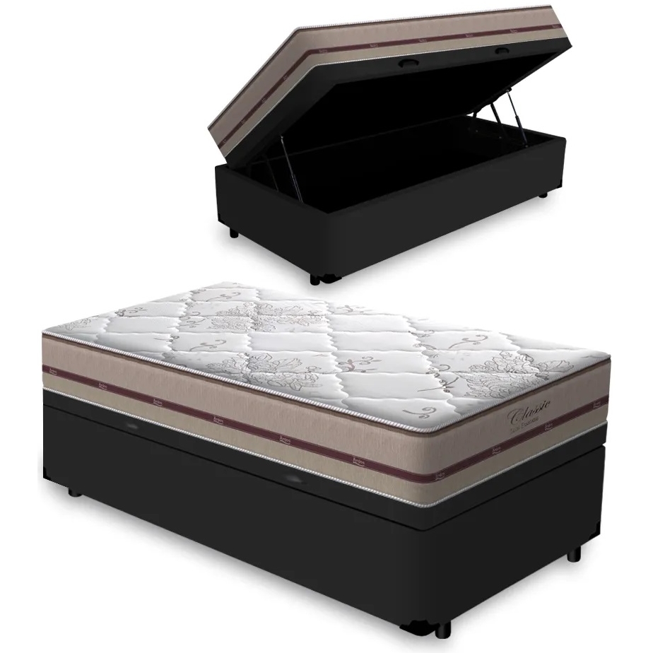 Colchão Solteiro Classic Ensacadas Bege + Base Baú Avalon Preto – ANJOS + AVALON