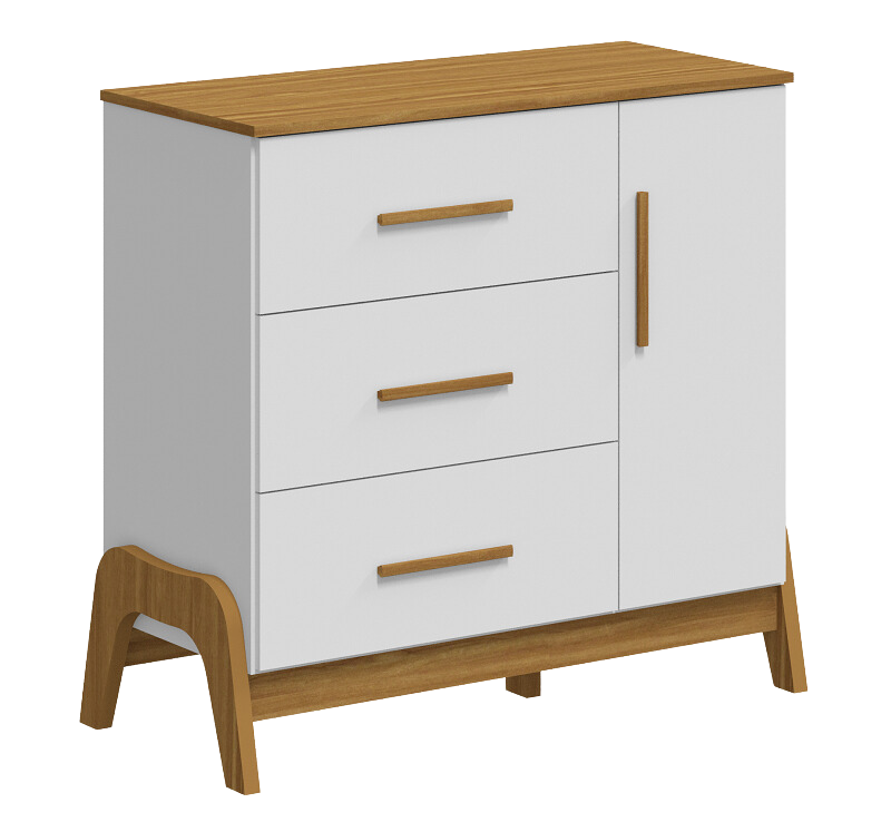Cômoda Guti Retrô Branco Brilho/Amêndoa – PEROBA MÓVEIS