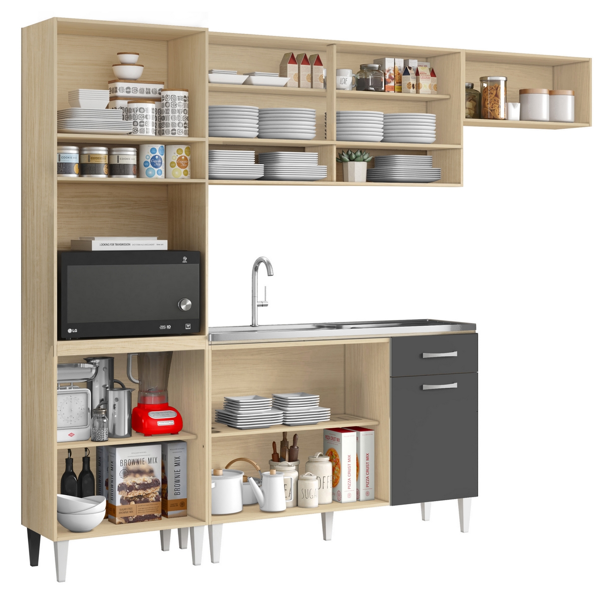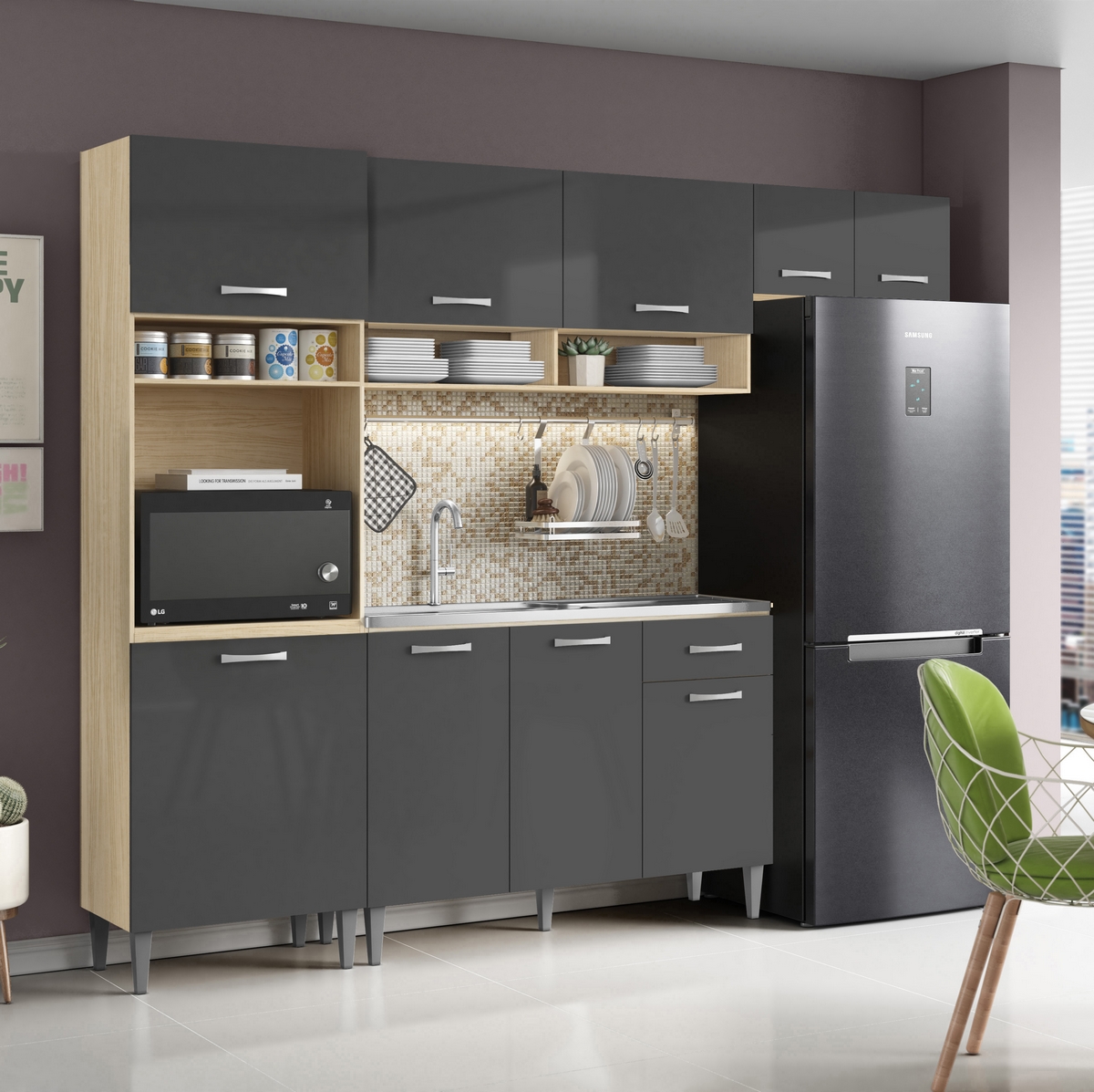 Seja o primeiro a avaliar “Cozinha Aurora + Balcão para Pia Atenas 249,7 m Avena/Grafite – ARAMÓVEIS”