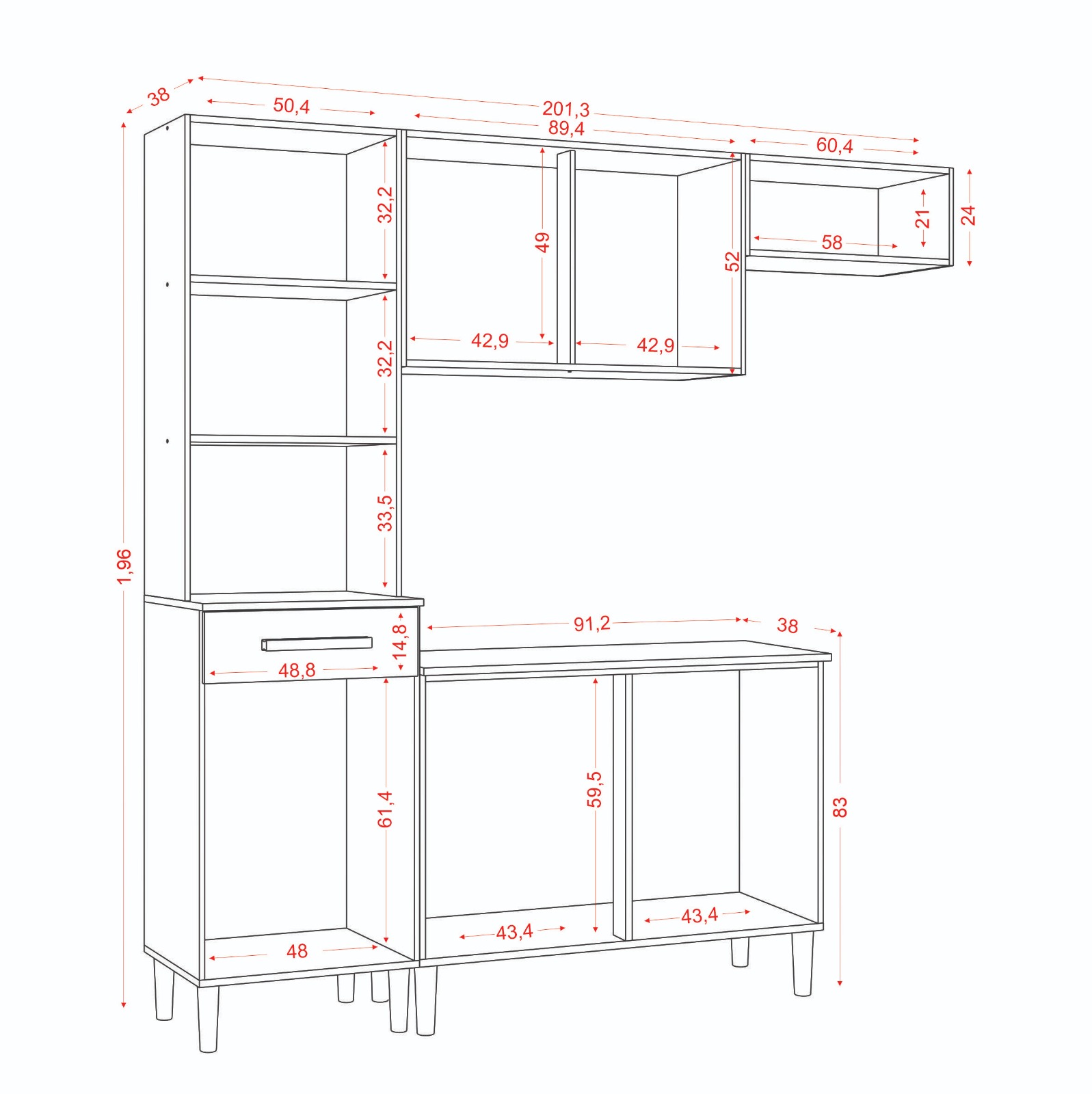 Largura: 201,3 cm
