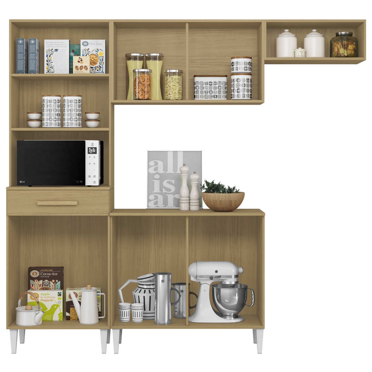 – Uma gaveta com corrediças metálicas