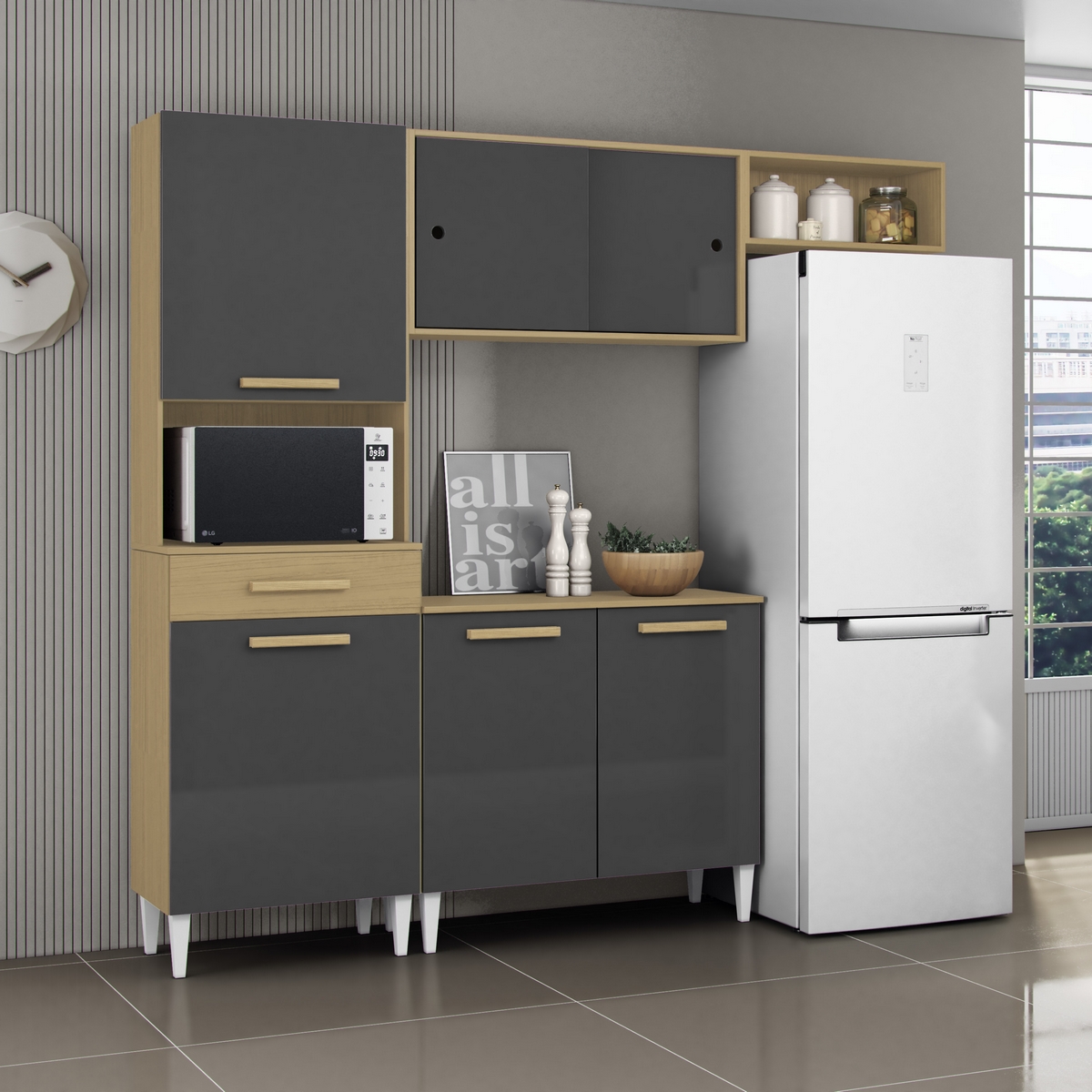Cozinha Compacta Isabelle Atacama/Grafite – ARAMÓVEIS