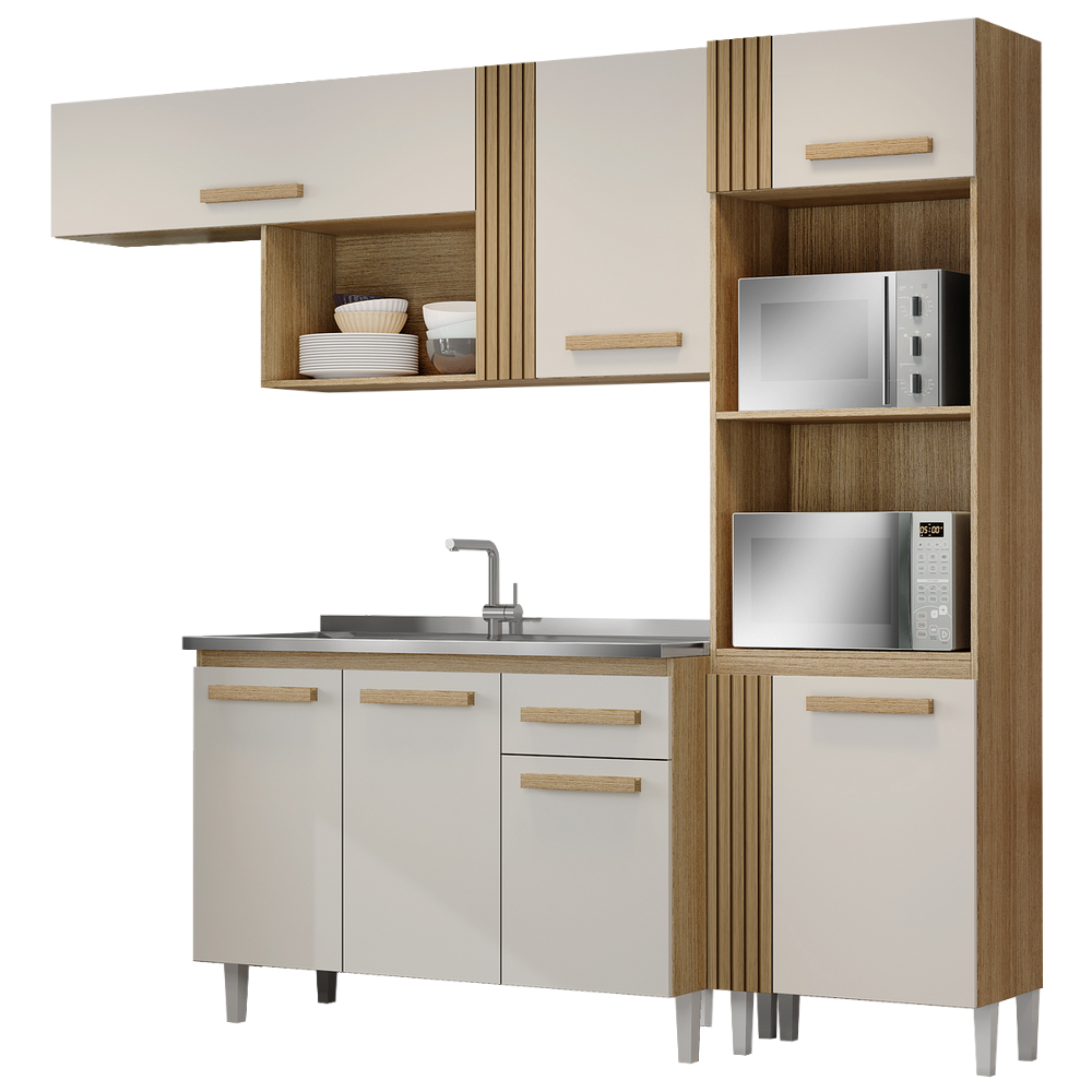 Cozinha Compacta para Pia + Balcão 3P1G Vitória Atacama/Off White – ARAMÓVEIS