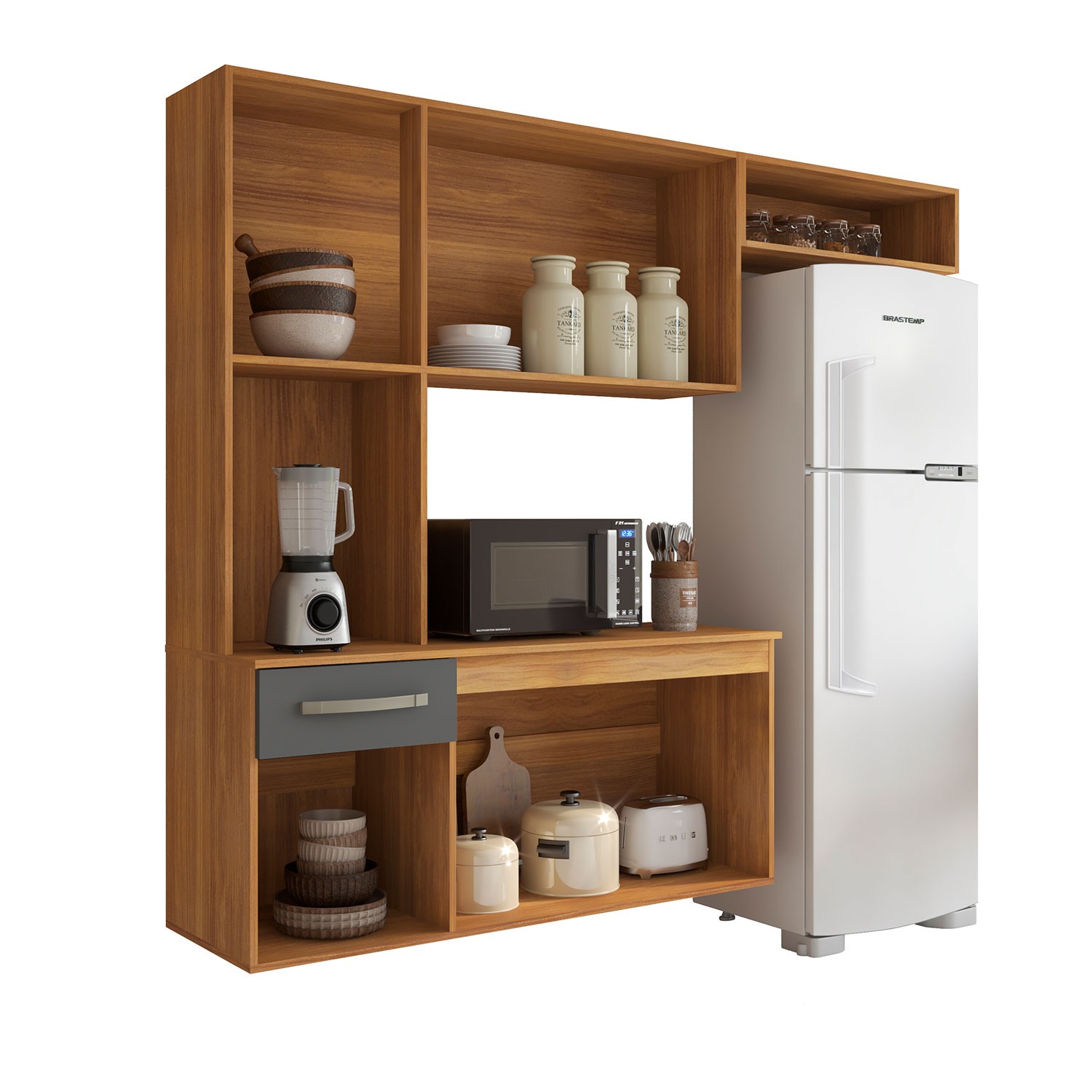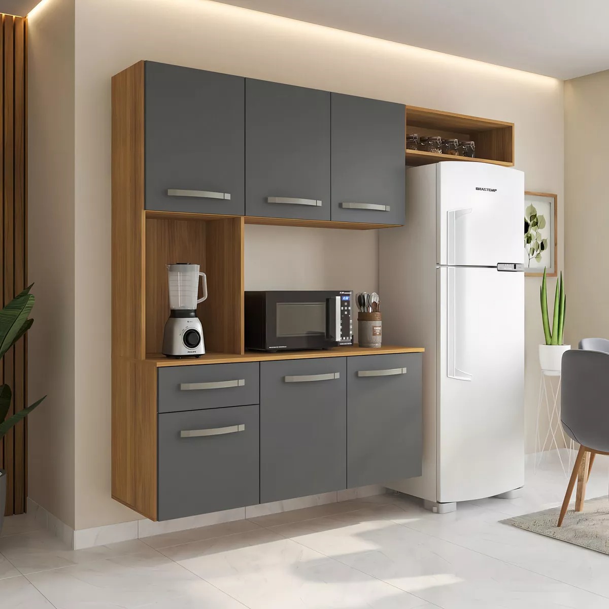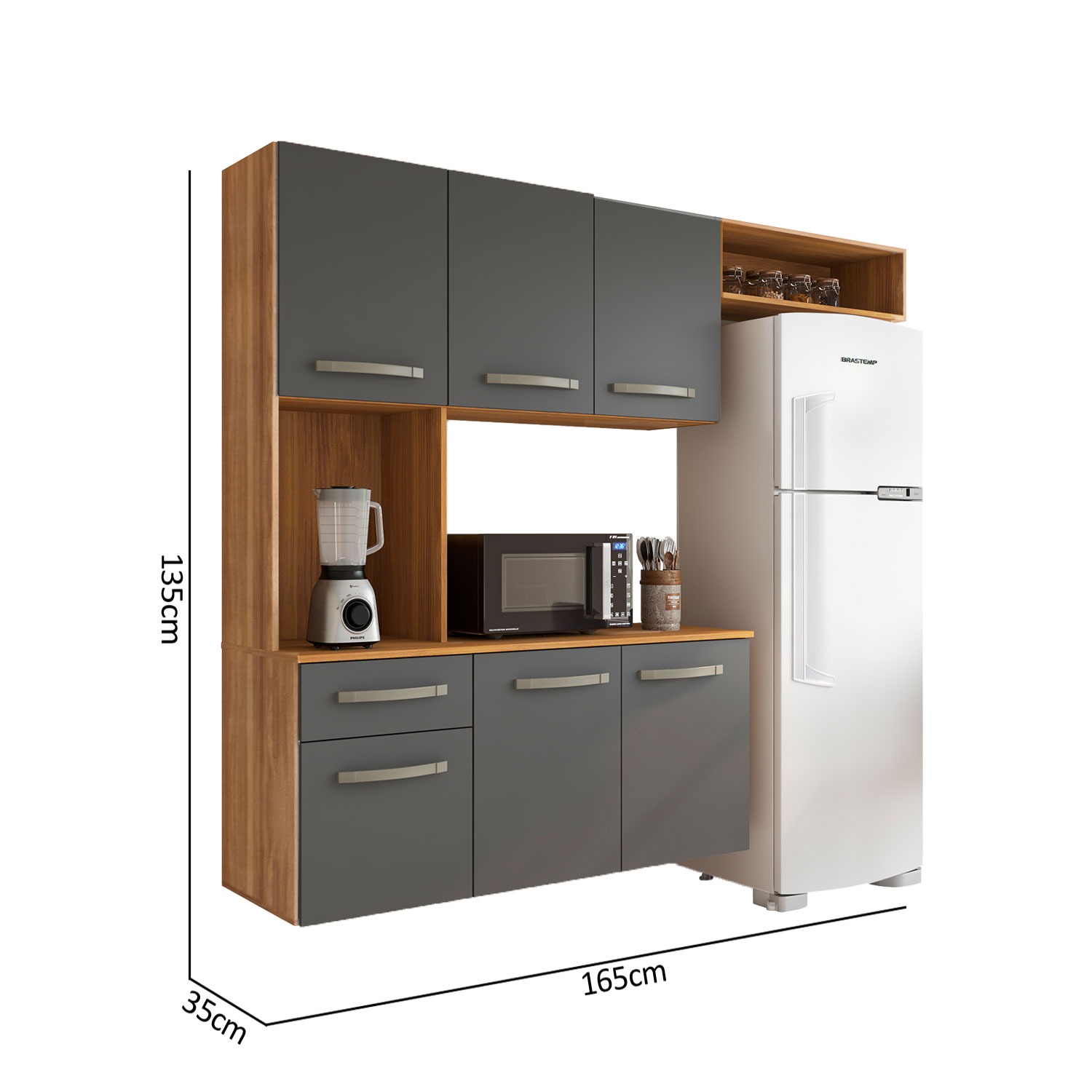 Cozinha Suspensa Belíssima 1,65 m Freijó/Grafite – FIORELLO