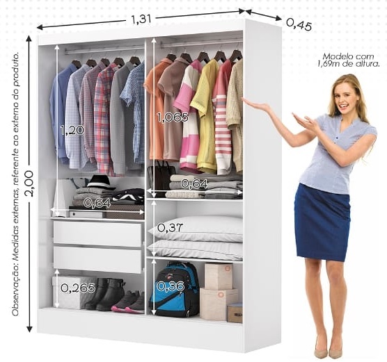 Guarda-Roupa 2 Portas Santiago(Belém) Plus 1,31 m Branco – CARIOCA MÓVEIS
