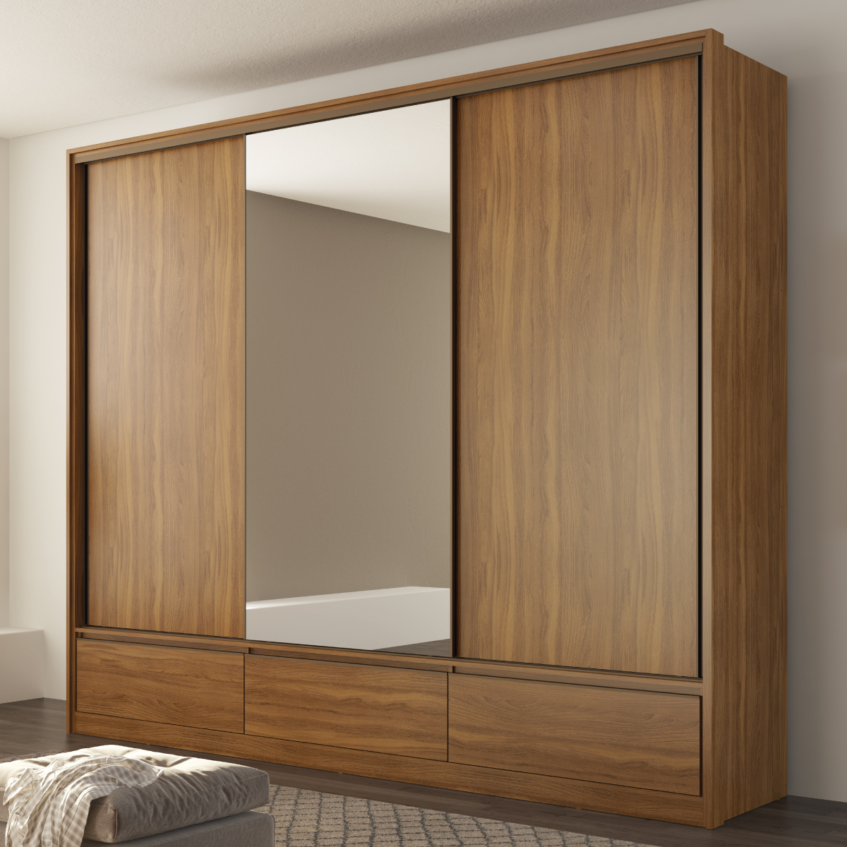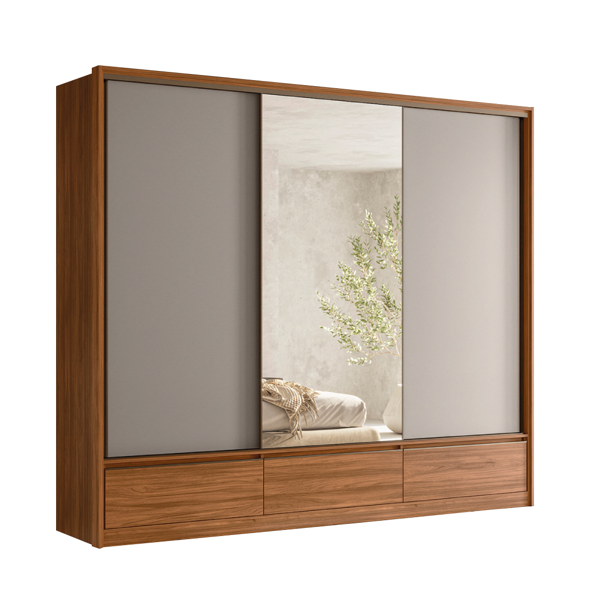 Guarda-Roupa 3 Portas Lounge 2,67 m Nogueira Touch/Nude Prime TX – DEMÓBILE