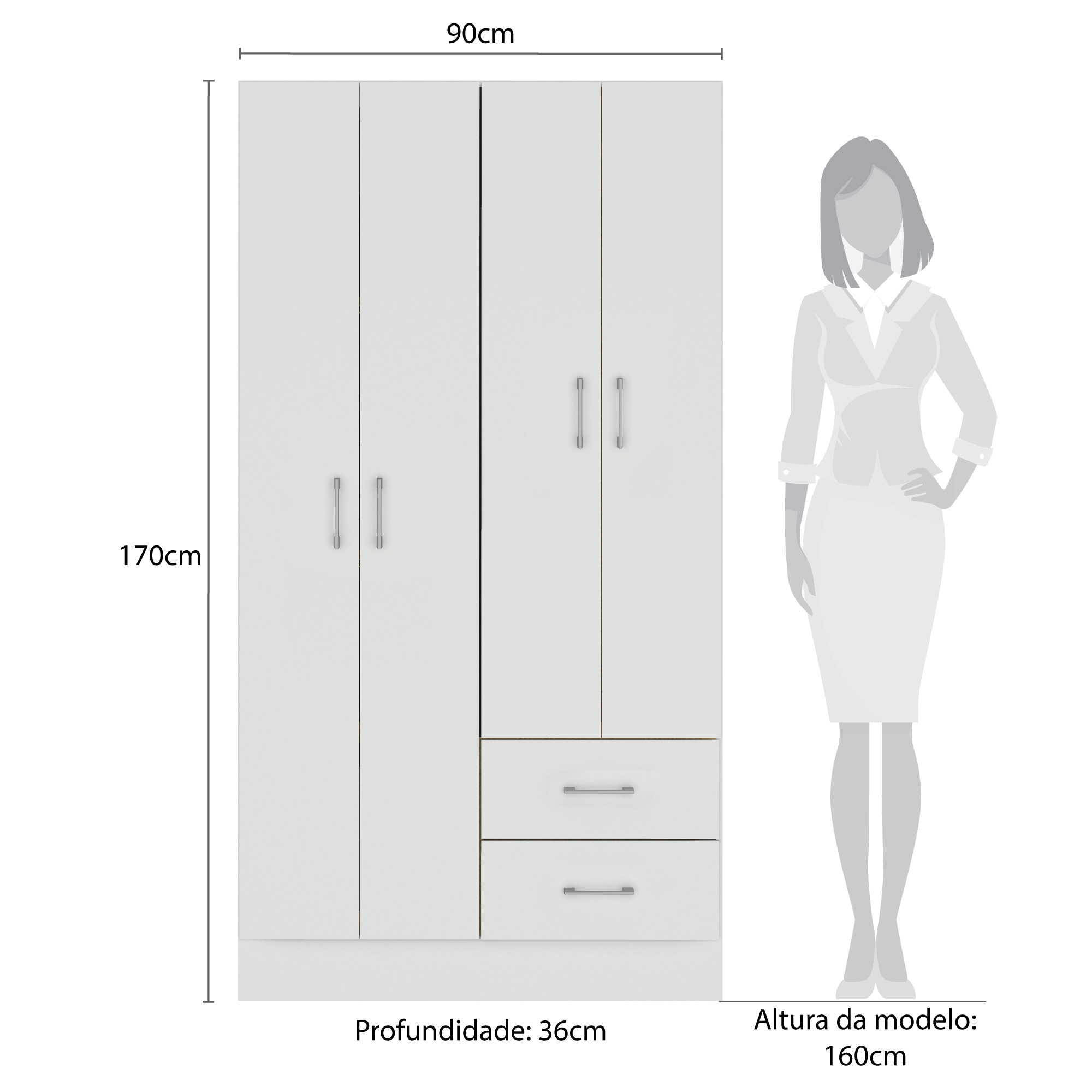 Guarda-Roupa 4 Portas Panamá 4002 0,90 m Branco – FELLICCI