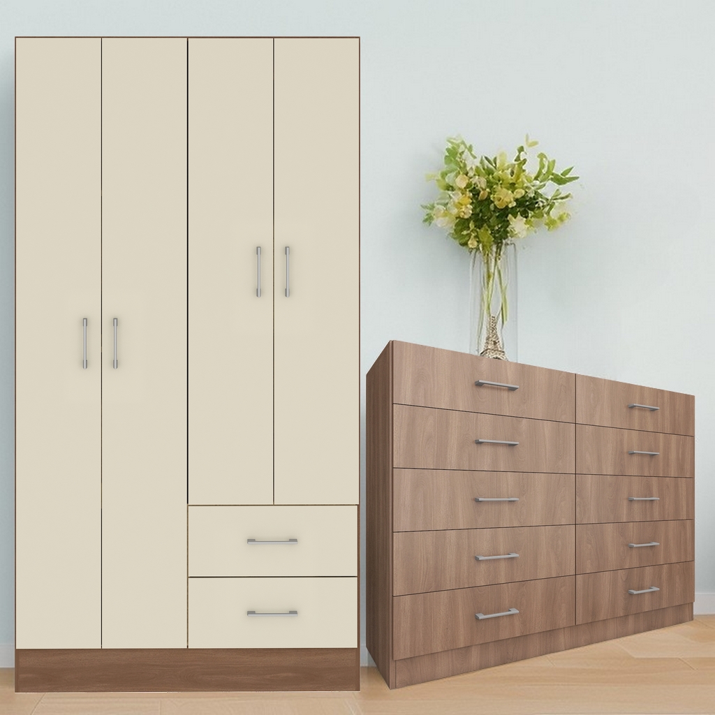 Guarda-Roupa 4 Portas Panamá 4002 Manchester/Off White + Cômoda 10 Gavetas Caribe Manchester – FELLICCI