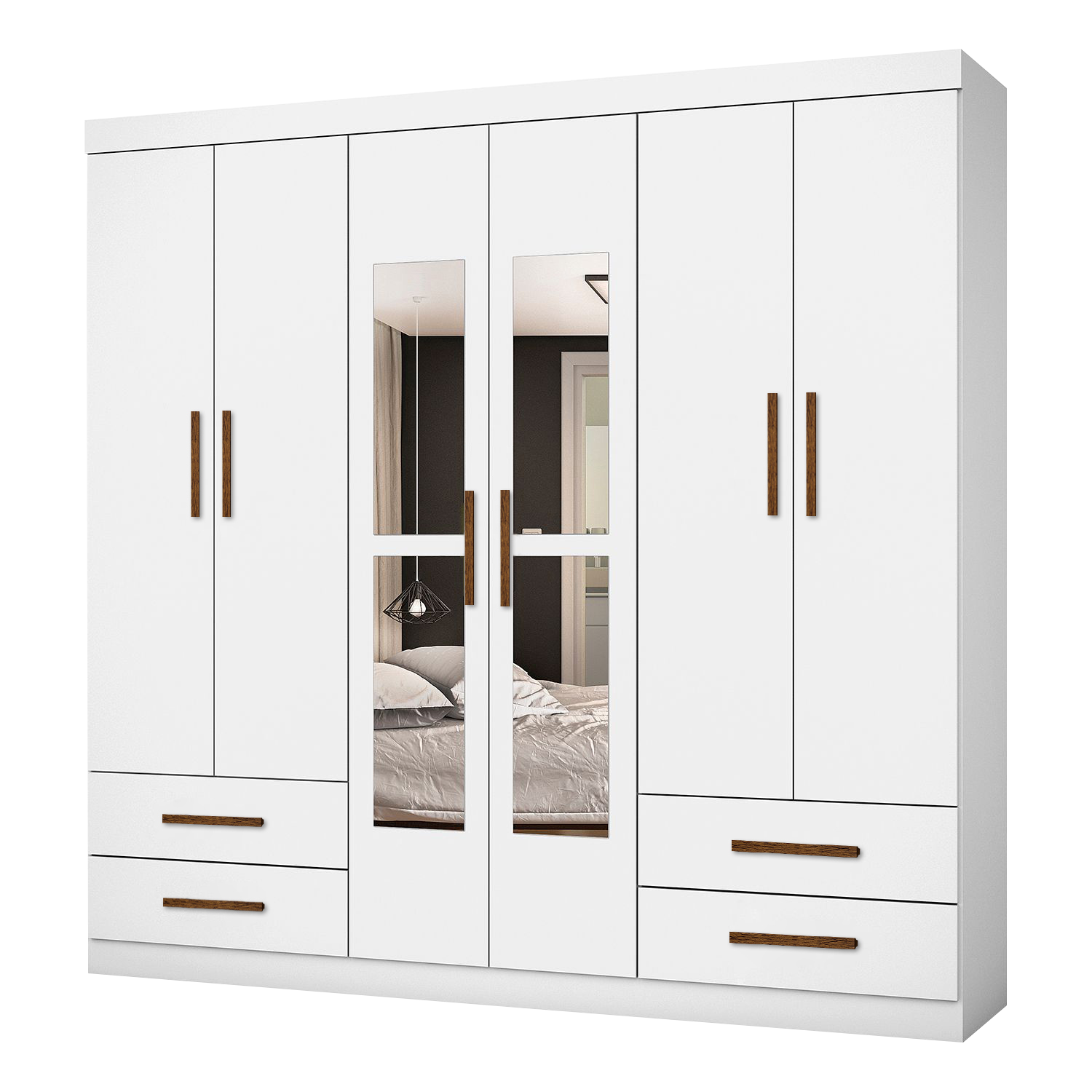 Guarda-Roupa 6 Portas Hércules(Com espelho)1,77 m Branco – CARIOCA MÓVEIS