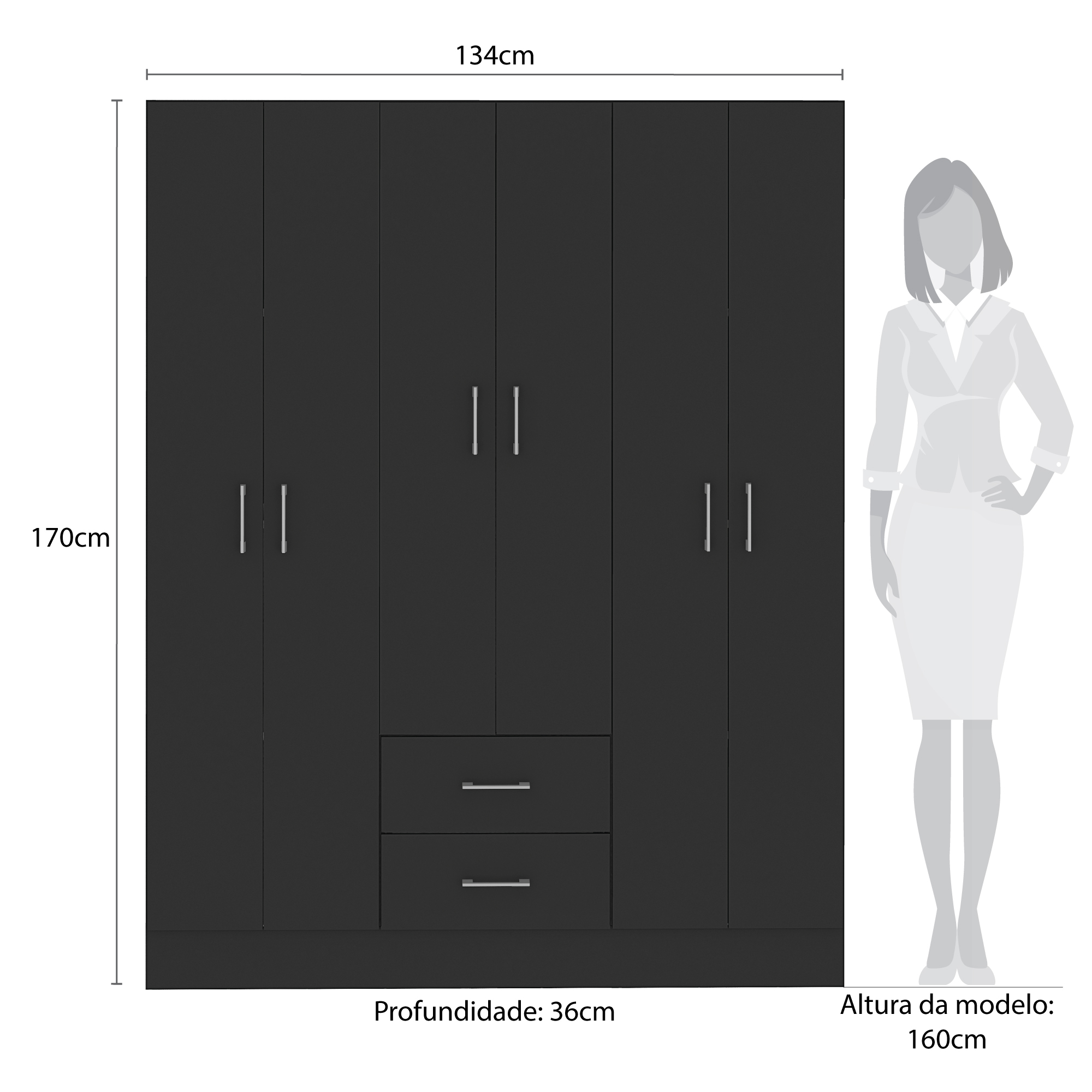 Guarda-Roupa 6 Portas Jamaica 6002 1,34 m Preto – FELLICCI