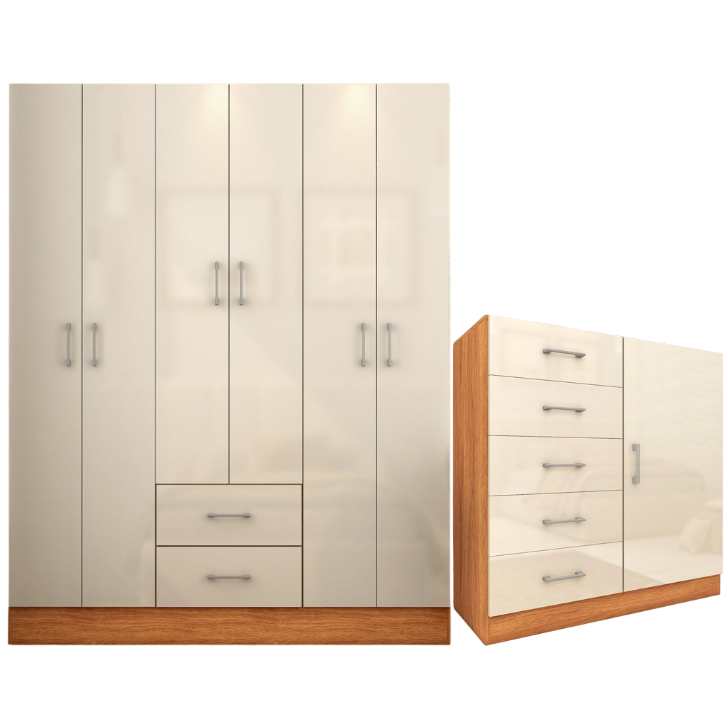 Guarda-Roupa 6 Portas Jamaica 6002 + Cômoda 5 Gavetas Sapateira Miami Cinamono/Off White – FELLICCI