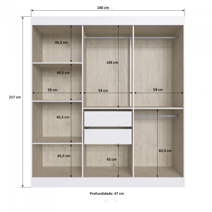 – Duas gavetas internas com corrediças telescópicas