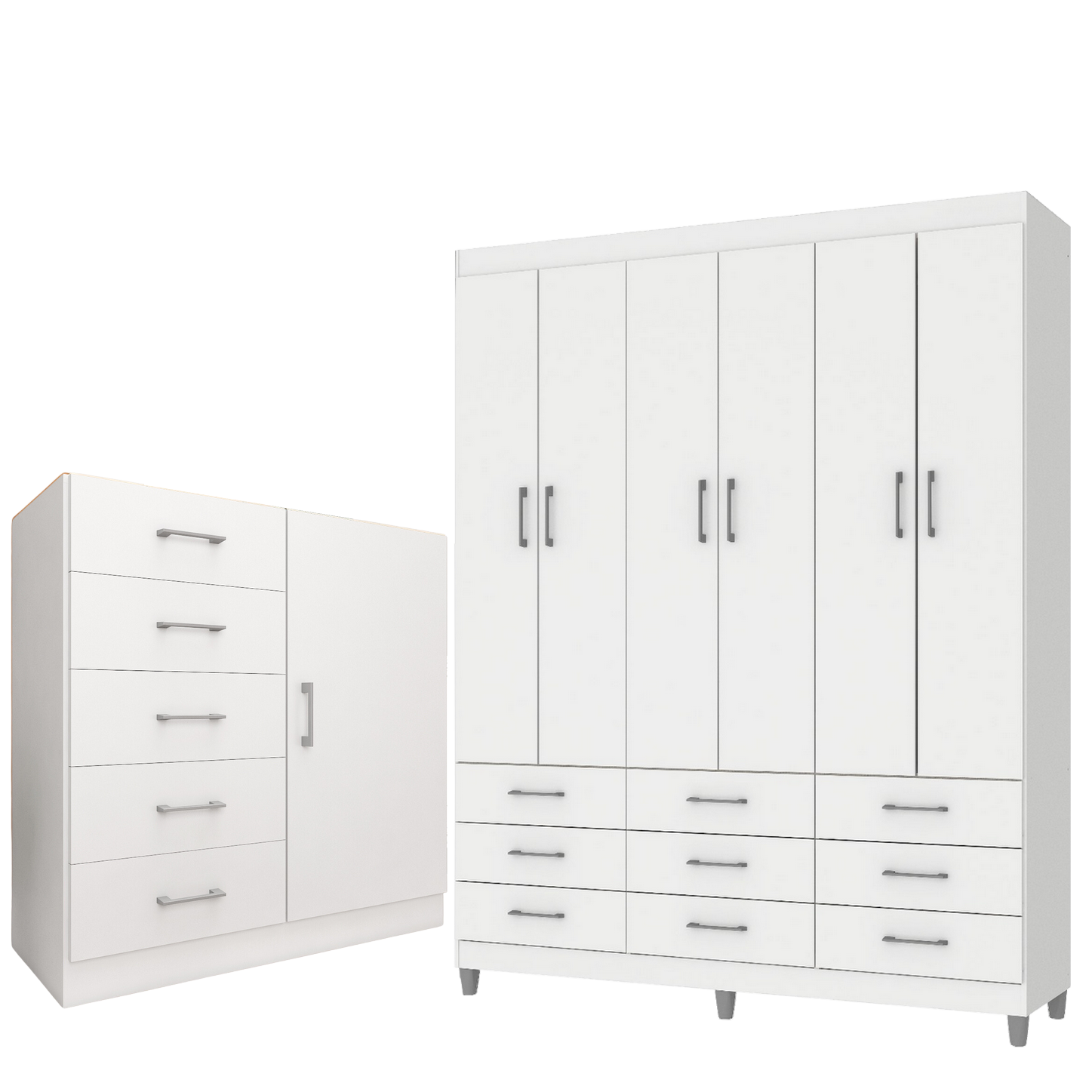 Guarda-Roupa 6 Portas Paraty 3690 + Cômoda 5 Gavetas Sapateira Miami Branco – FELLICCI