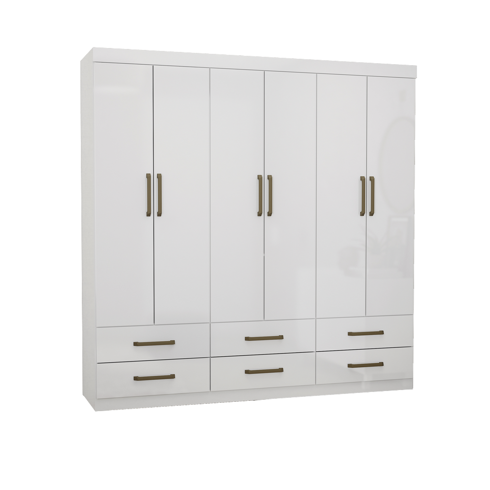 Guarda-Roupa 6 Portas/Sem Pés Dallas Branco – CARIOCA MÓVEIS