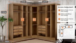 Guarda-Roupa Modulado Rizon 001(Dois Módulos 4 Portas + Um Módulo Canto Oblíquo)