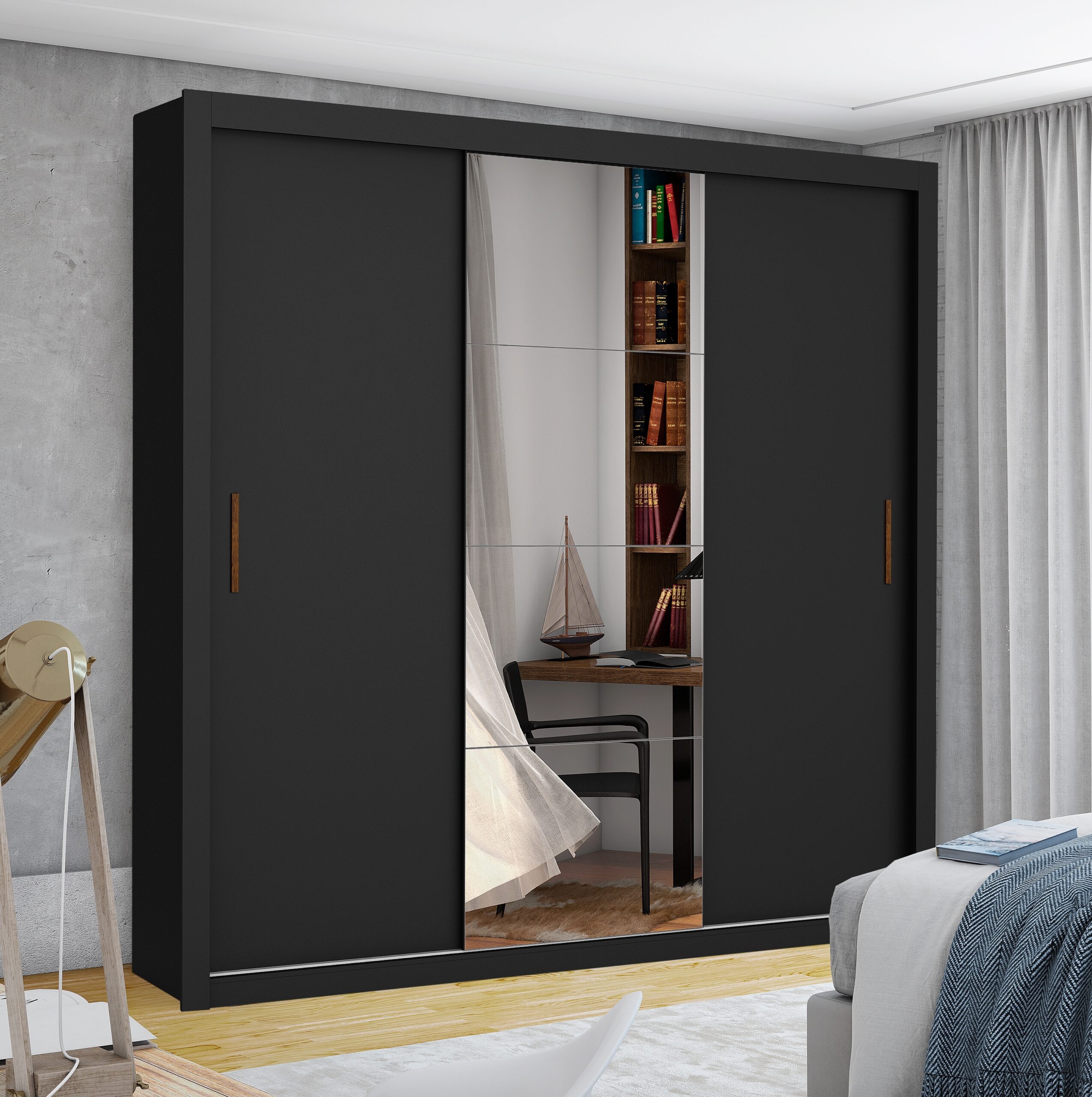 Guarda-Roupa Veneza/Clara/Berlim Plus (1 Porta espelhada) 1,855 m Preto – CARIOCA MÓVEIS
