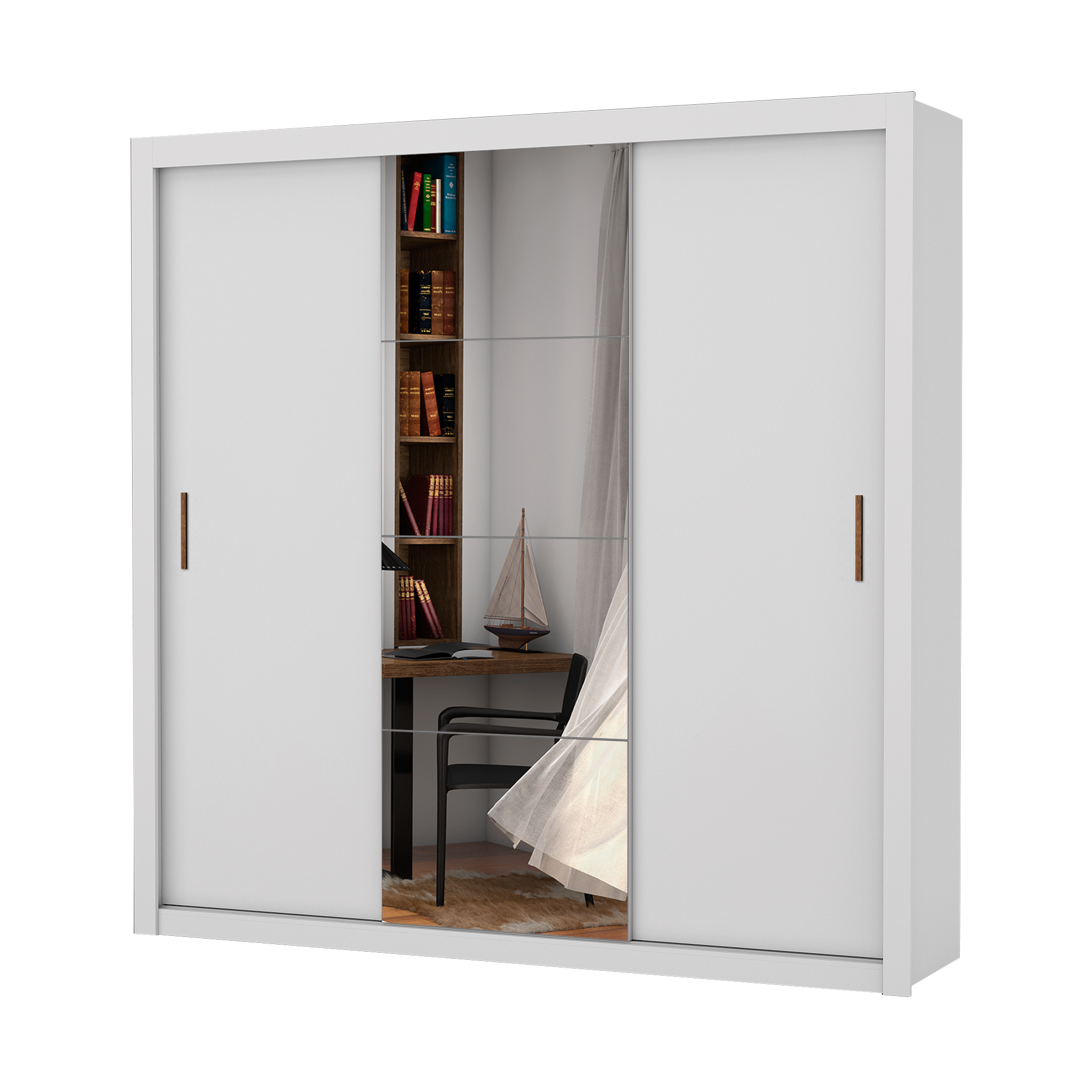 Guarda-Roupa Veneza/Clara/Berlim Plus(1 Porta espelhada) 1,855 m Branco – CARIOCA MÓVEIS