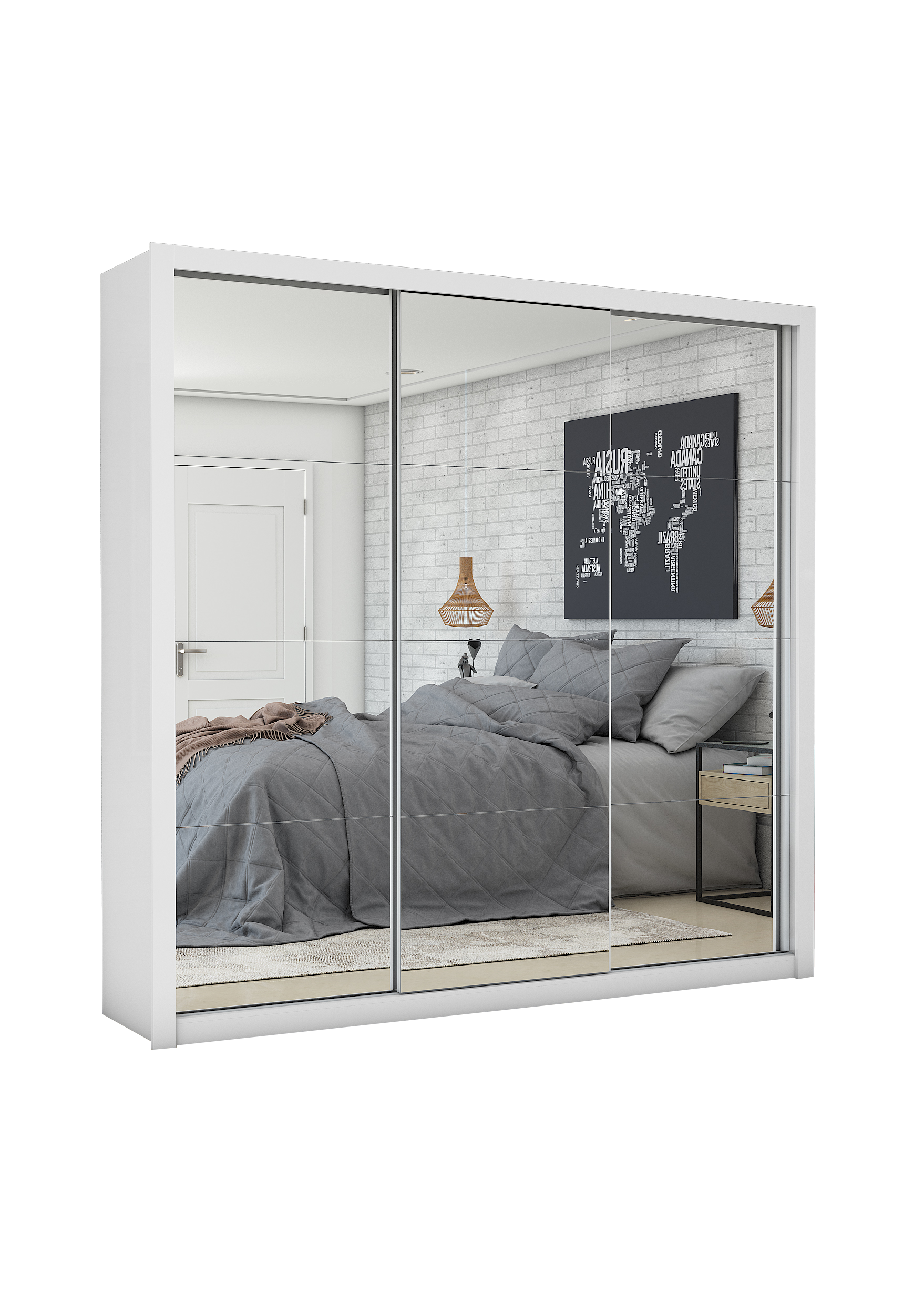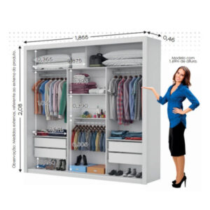 Guarda-Roupa Veneza/Clara/Berlim Premium(3 Portas espelhadas) 1,855 m Branco – CARIOCA MÓVEIS