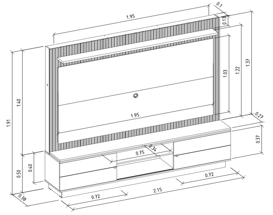 – Espaço para TV: 102 cm x 195 cm (AxL)