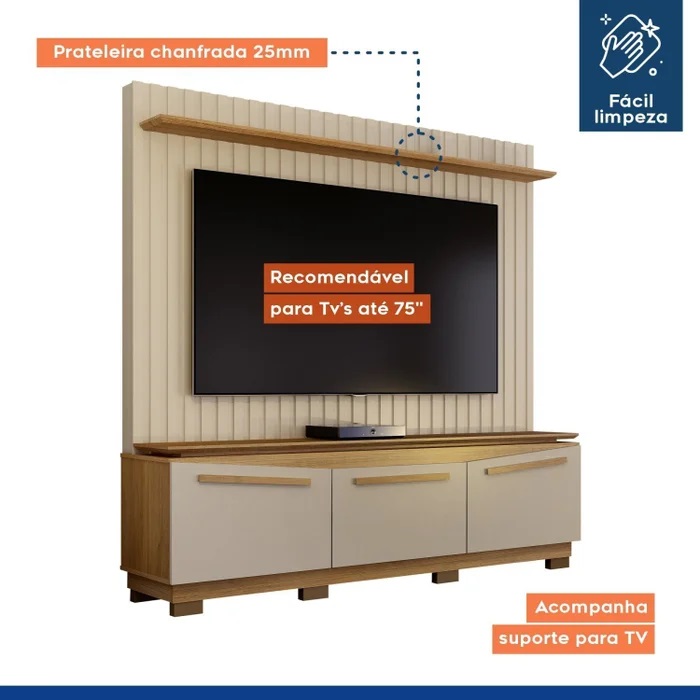 Home Theater até 75″ Montreal Off White/Cinamono – VALDEMÓVEIS