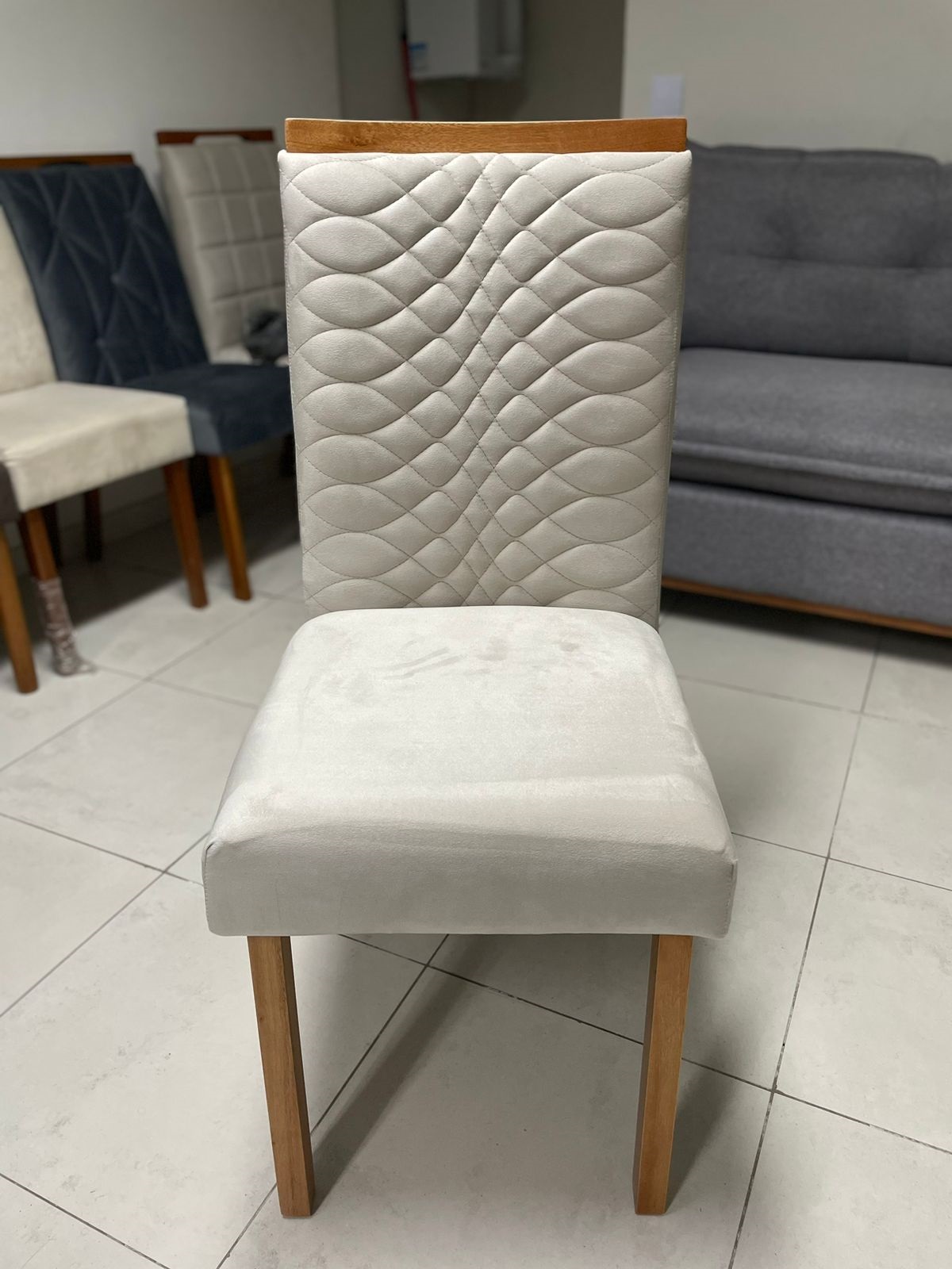 – Assento em veludo bege