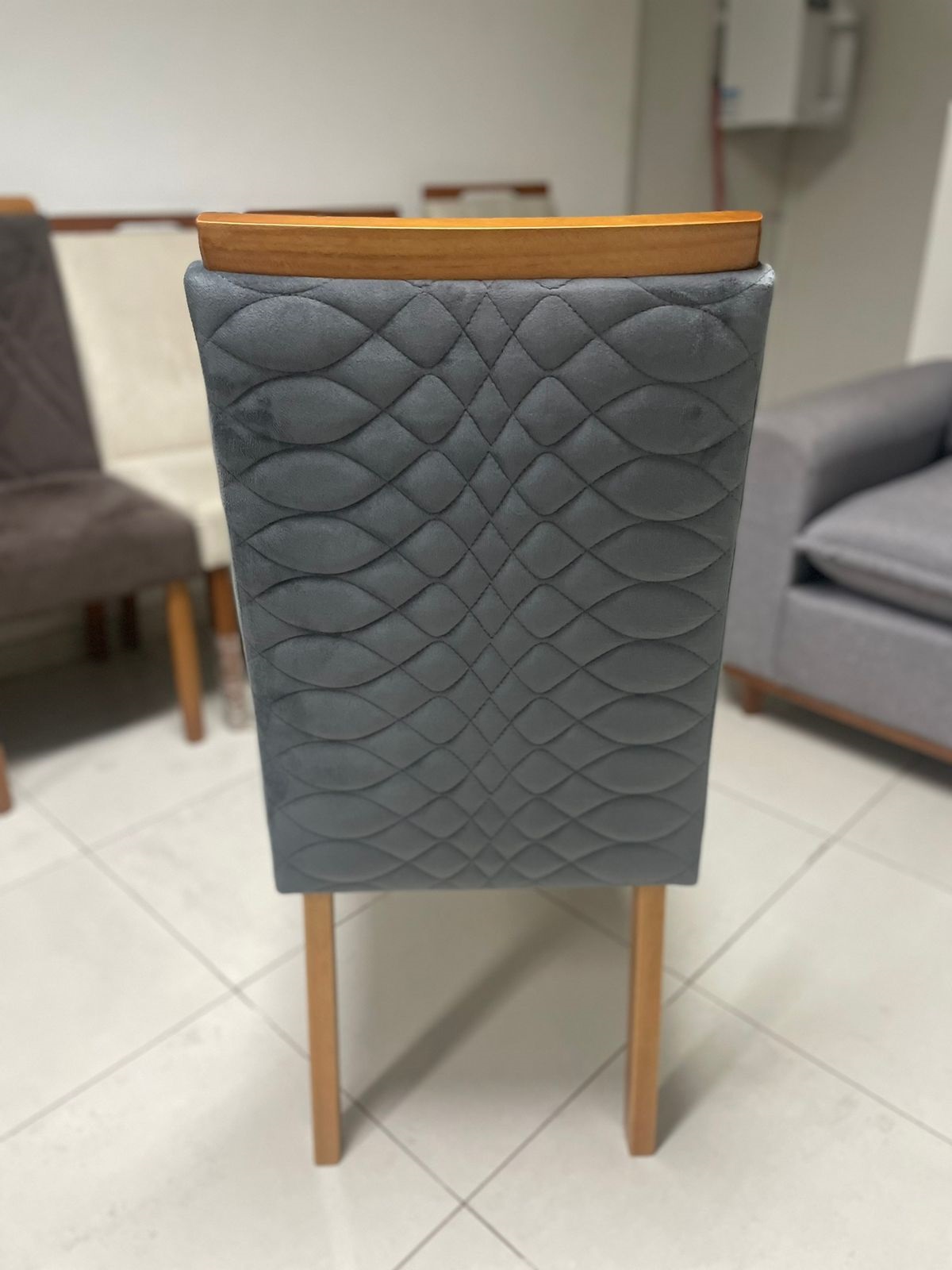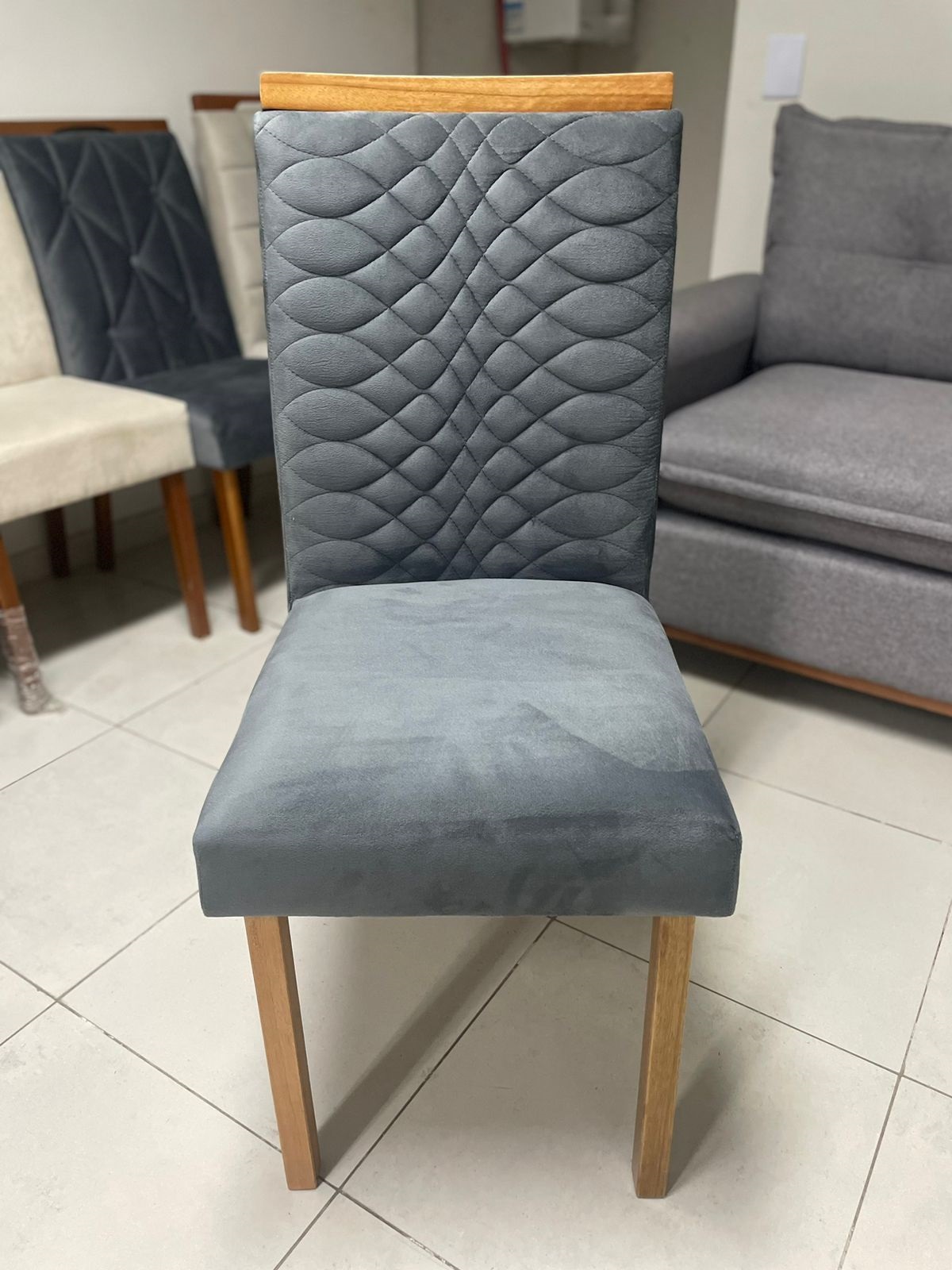 – Assento em veludo grafite