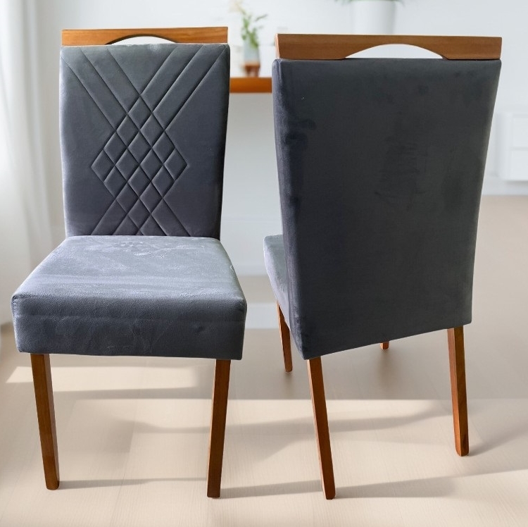 Kit 2 Cadeiras Helena Mel/Veludo Grafite – OURO DECOR