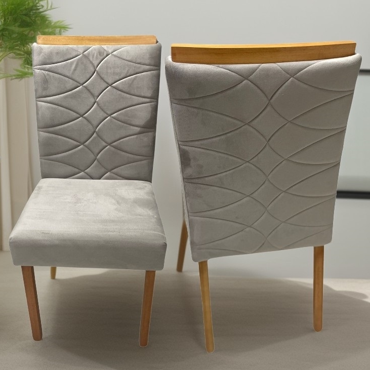 Kit 2 Cadeiras Safira Mel/Veludo Bege – WM DECOR