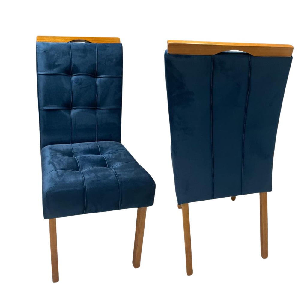 Kit 2 Cadeiras Sophia/Capri Mel/Veludo Azul – WM DECOR