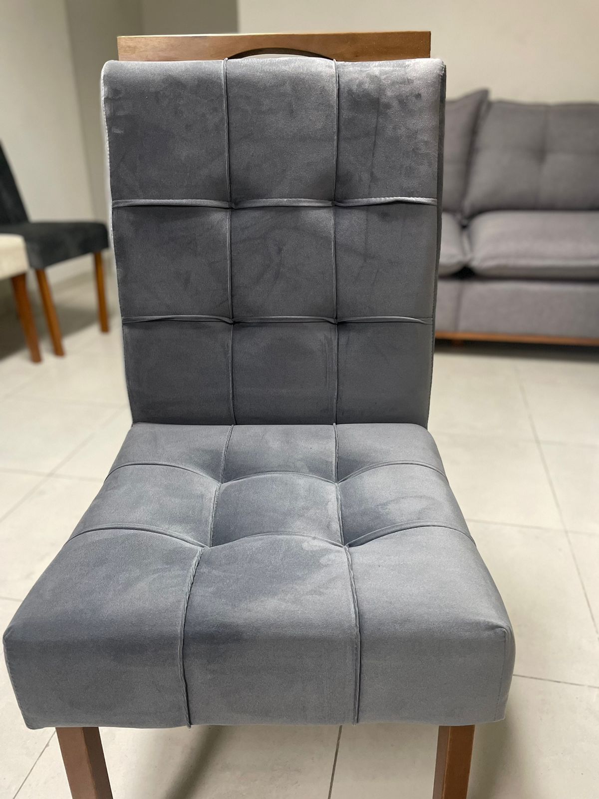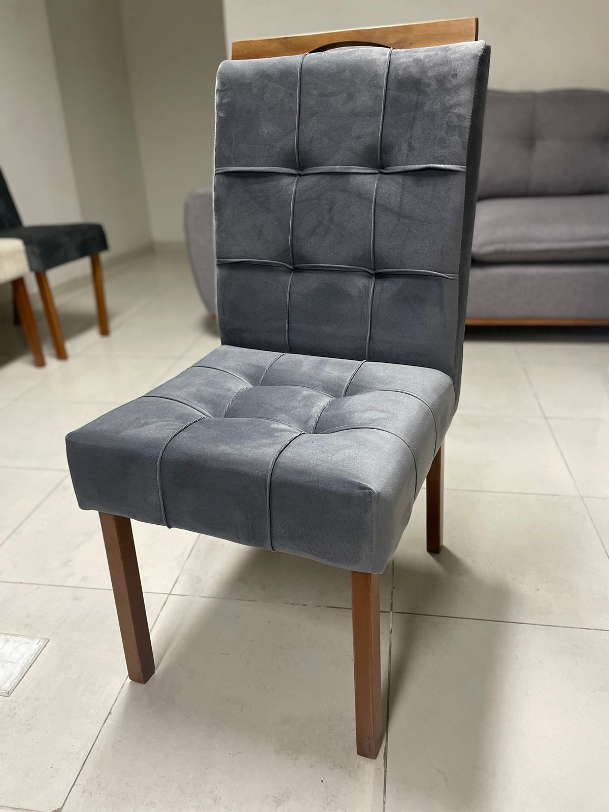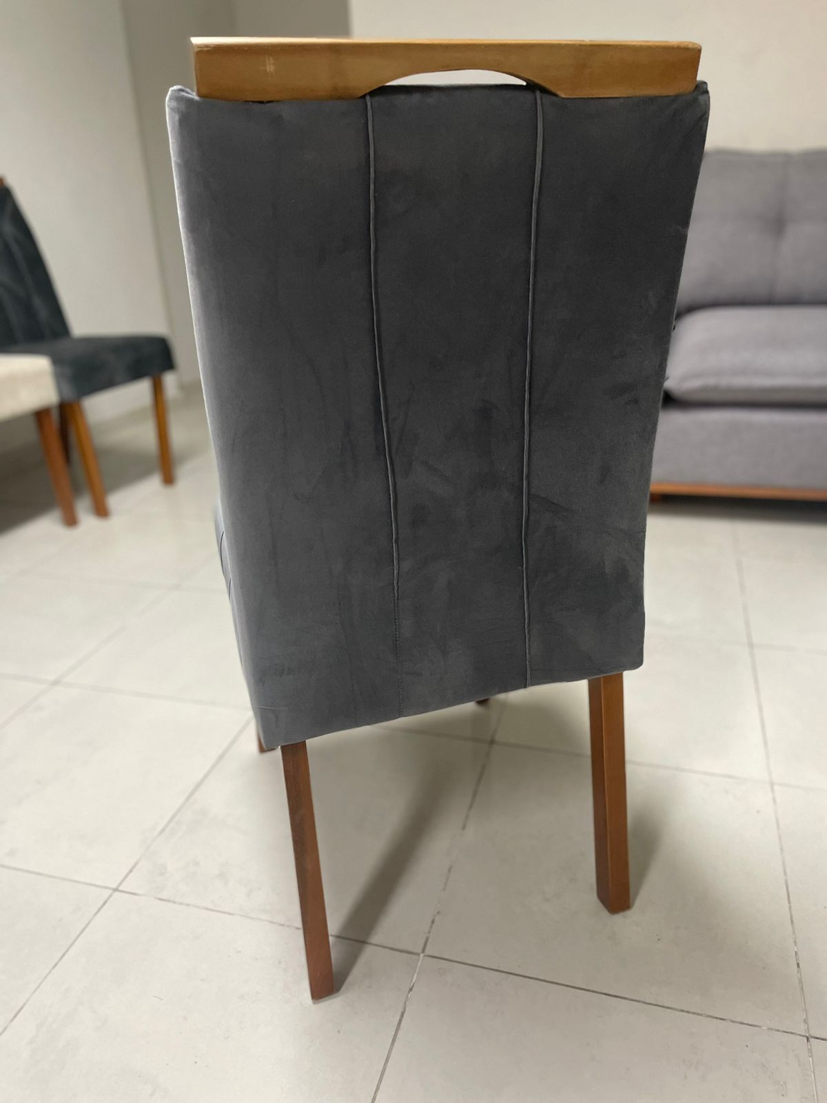 – Assento em veludo grafite