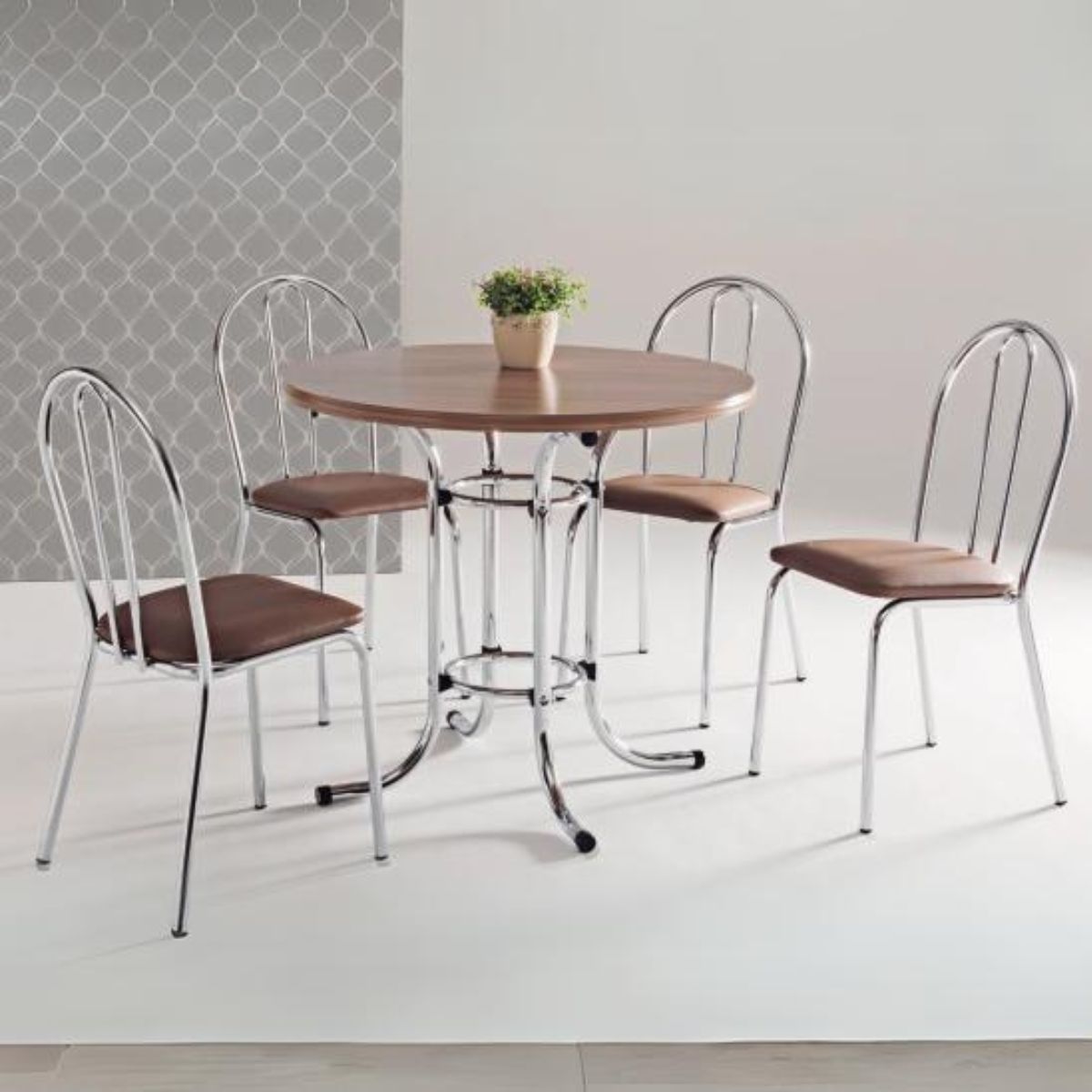 Mesa 4 Cadeiras Lisboa Nogueira/Tabaco – MÜLLER MÓVEIS