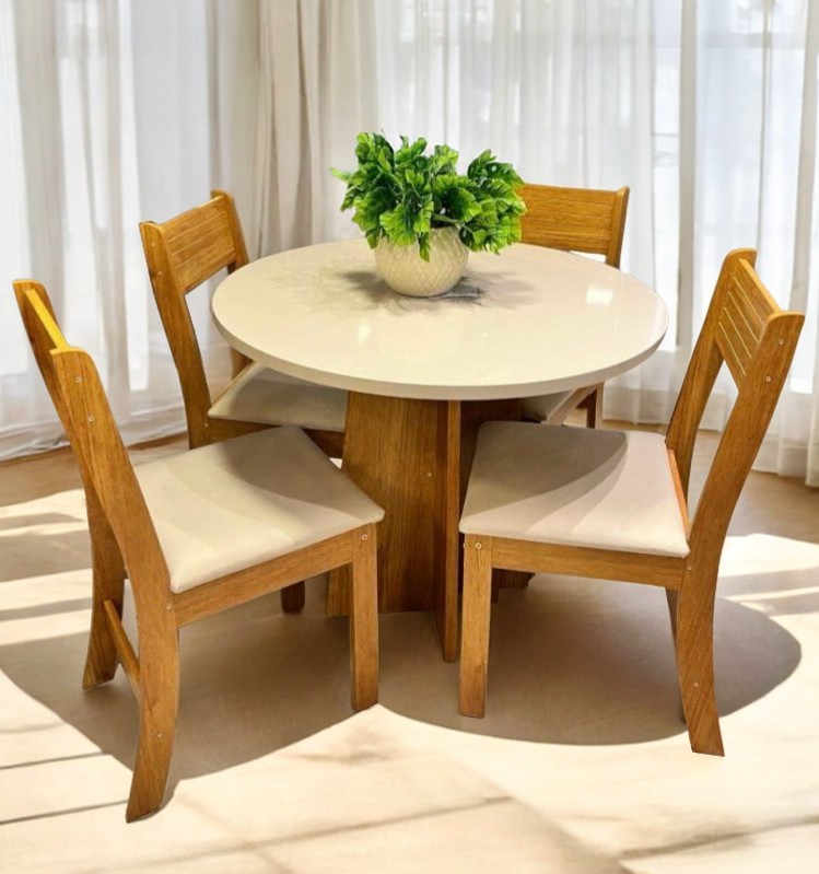 Mesa 4 Cadeiras Redonda Flipp/Slin B Mel/Blonde – VIERO MÓVEIS