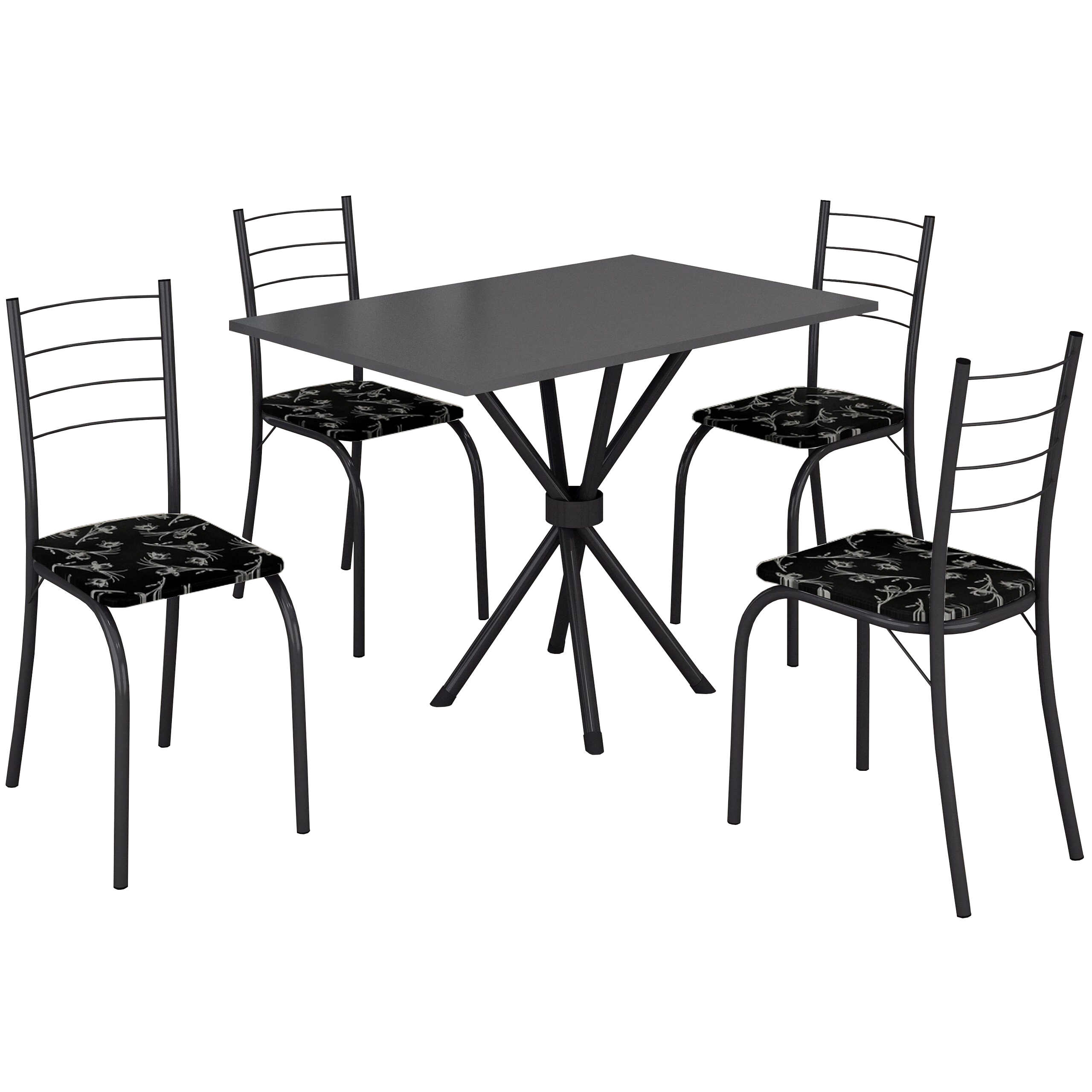 Mesa 4 Cadeiras Rio 100×60 Preto/Grafite/Preto Lírio – TEIXEIRA