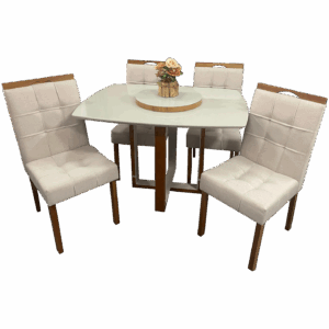 Mesa Atlas Mel/Off White Canto Barril 120×90 com 4 Cadeiras Sophia Mel/Linho Bege 200 – ART ASSENTOS + WM DECOR