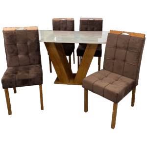 Mesa Classic 120 Cinamomo/Off White com 4 Cadeiras Sophia Mel/Veludo Marrom – CEL MÓVEIS + WM DECOR