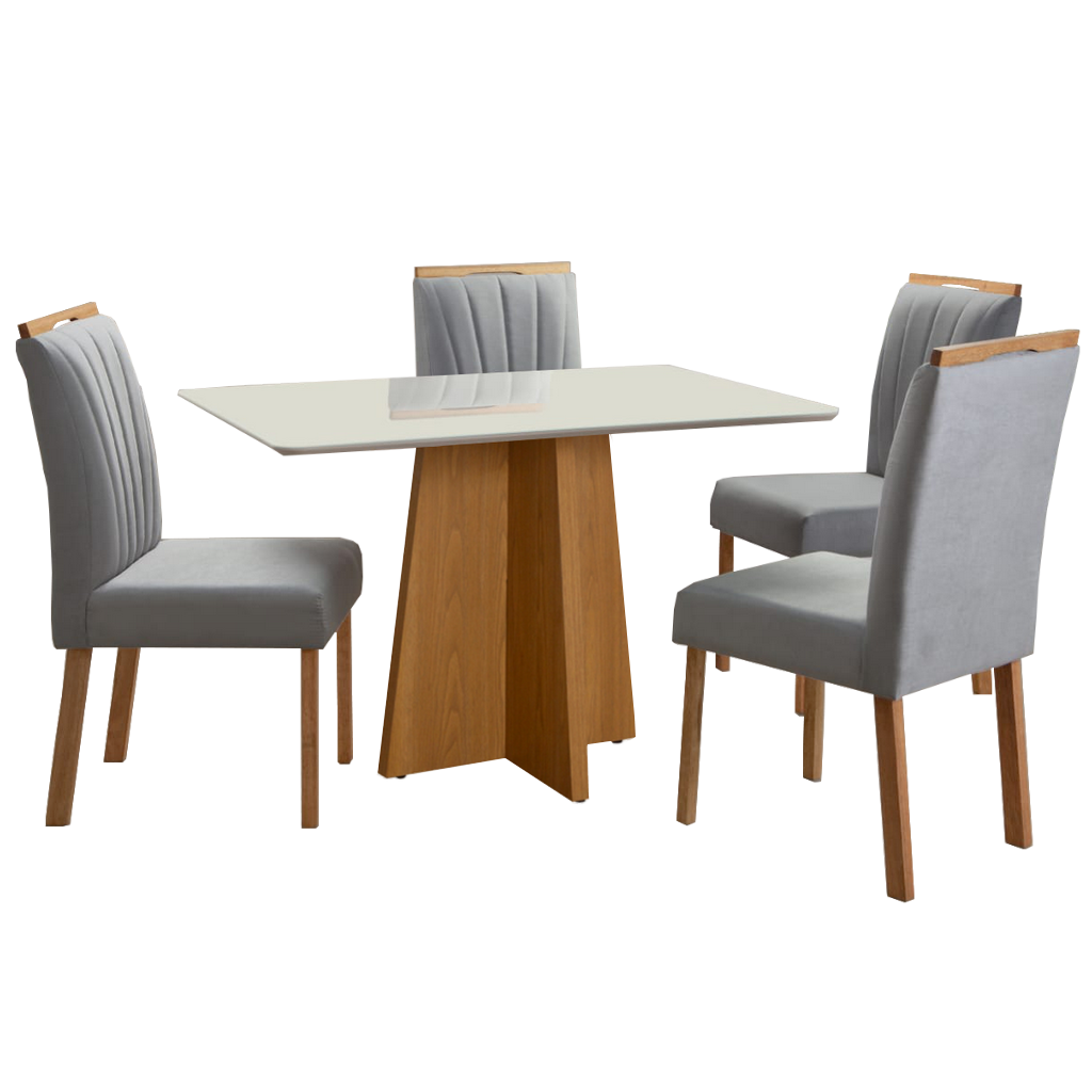 Mesa Dasala 120 Imbuia Mel/Off White com 4 Cadeiras Patrícia 01 Imbuia Mel/Veludo Cinza Prata 148 – CARVALHO DECOR