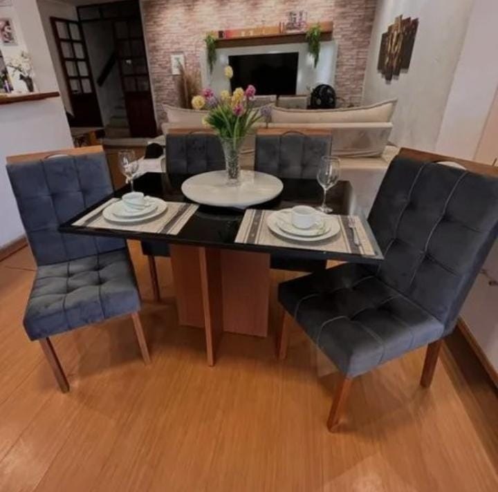 Mesa Los Angeles 120 Cinamono/Preto com 4 Cadeiras Sophia/Capri Veludo Preto – MINASPLAC + WM DECOR