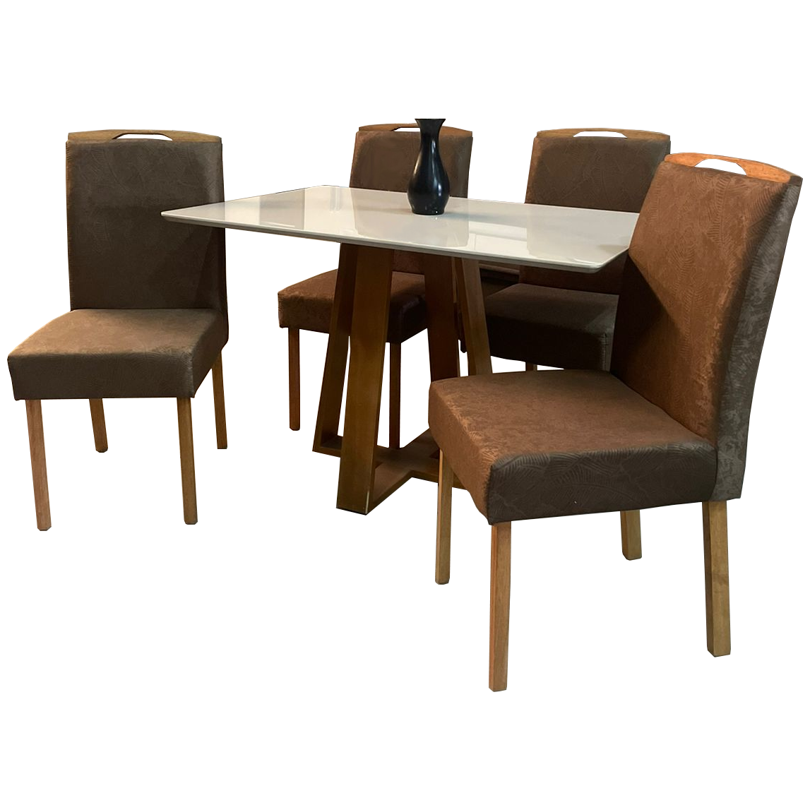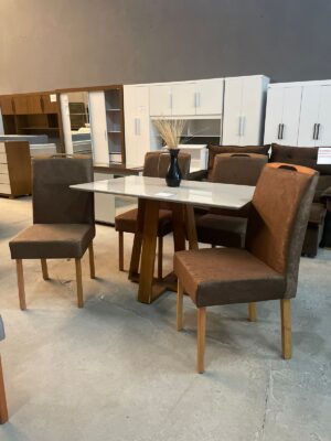 Mesa Pedro 120 Mel/Off White com 4 Cadeiras Priscila Imbuia Mel Veludo Marrom 1014 – ART ASSENTOS + AVALON DECOR