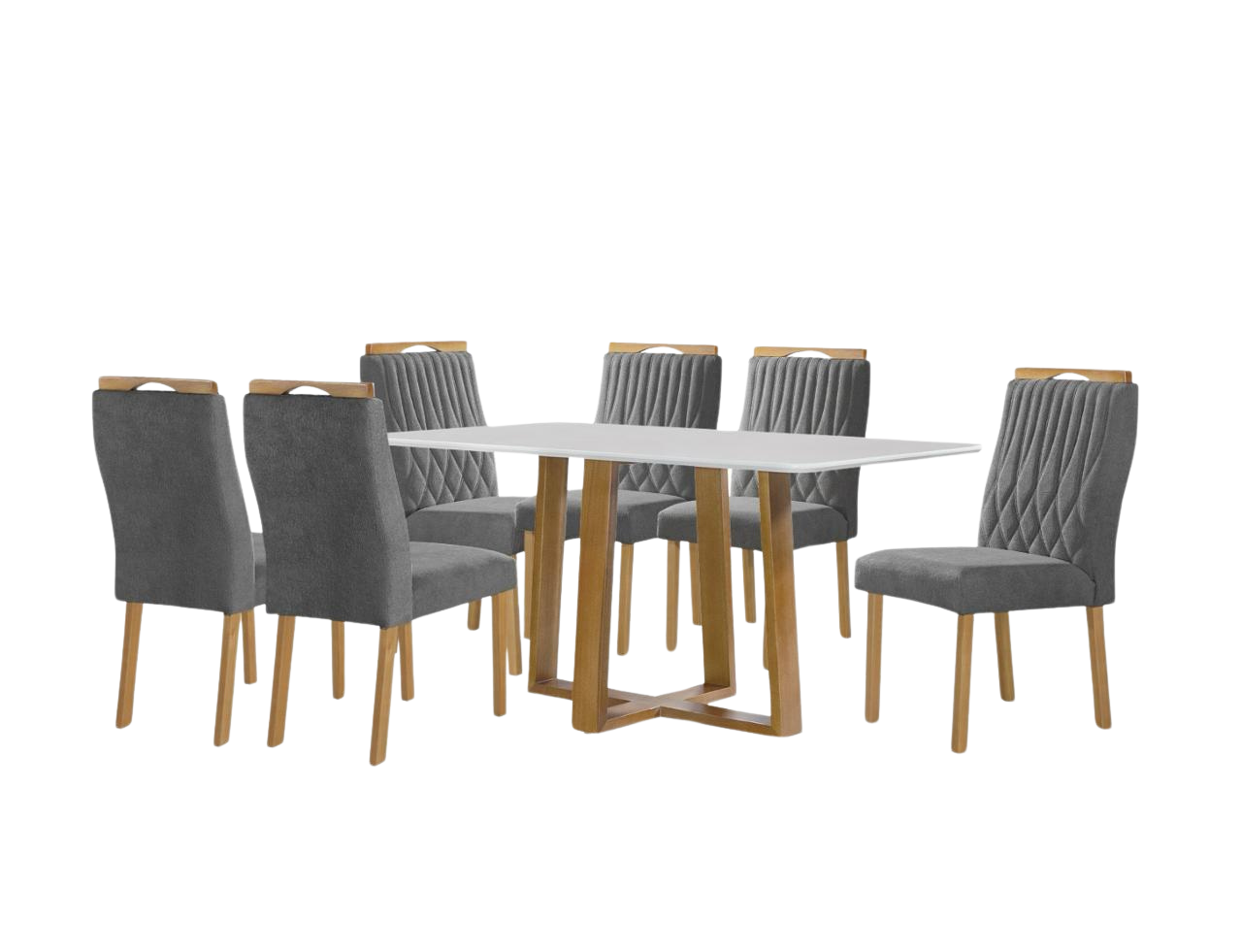 Mesa Pedro 160 Mel/Off White com 6 Cadeiras Gênova Veludo Grafite – ART ASSENTOS
