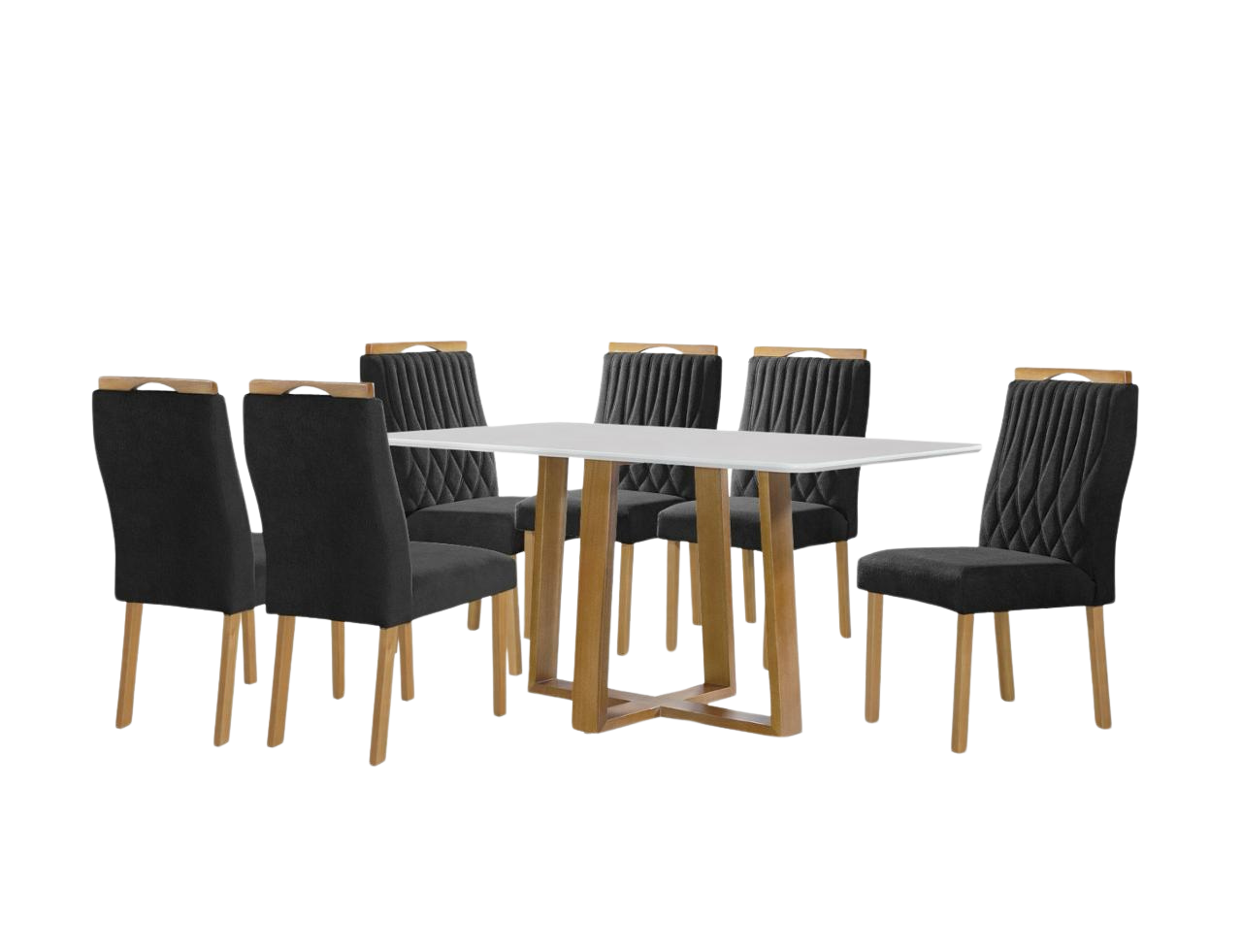 Mesa Pedro 160 Mel/Off White com 6 Cadeiras Gênova Veludo Preto – ART ASSENTOS
