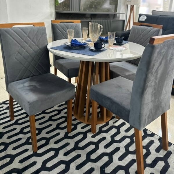 Mesa Redonda Berlim 100 Cinamono/Off White com 4 Cadeiras Helena Veludo Grafite – CEL MÓVEIS + OURO DECOR