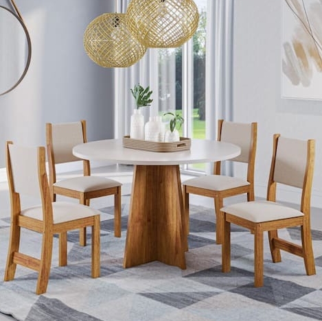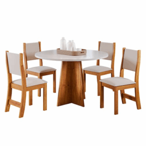 Mesa Redonda Flipp/Slin Mel/Blonde com 4 Cadeiras Sol Linho Bronze – VIERO MÓVEIS