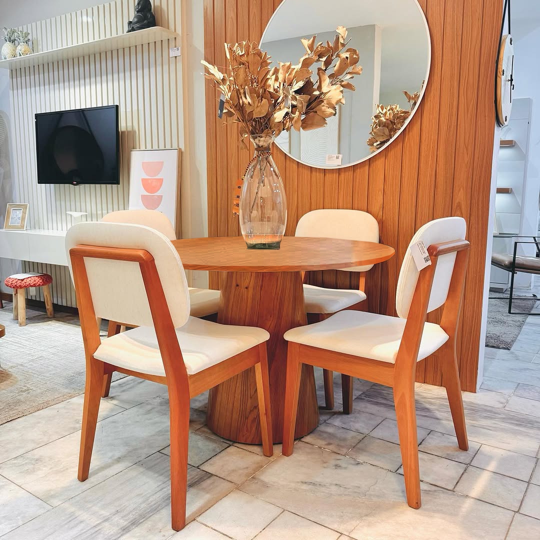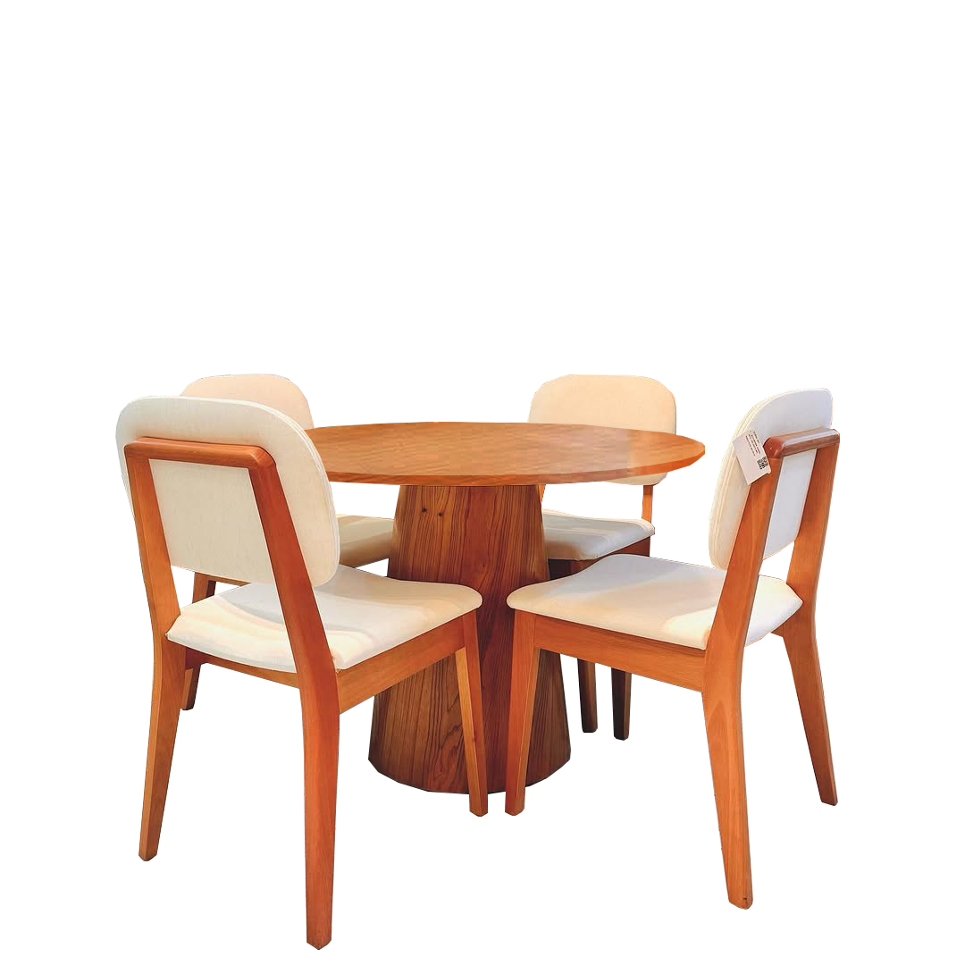 Mesa Redonda Malva 110 Mel com 4 Cadeiras Gaya Mel/Linho Bege 01 – J SILVA MÓVEIS