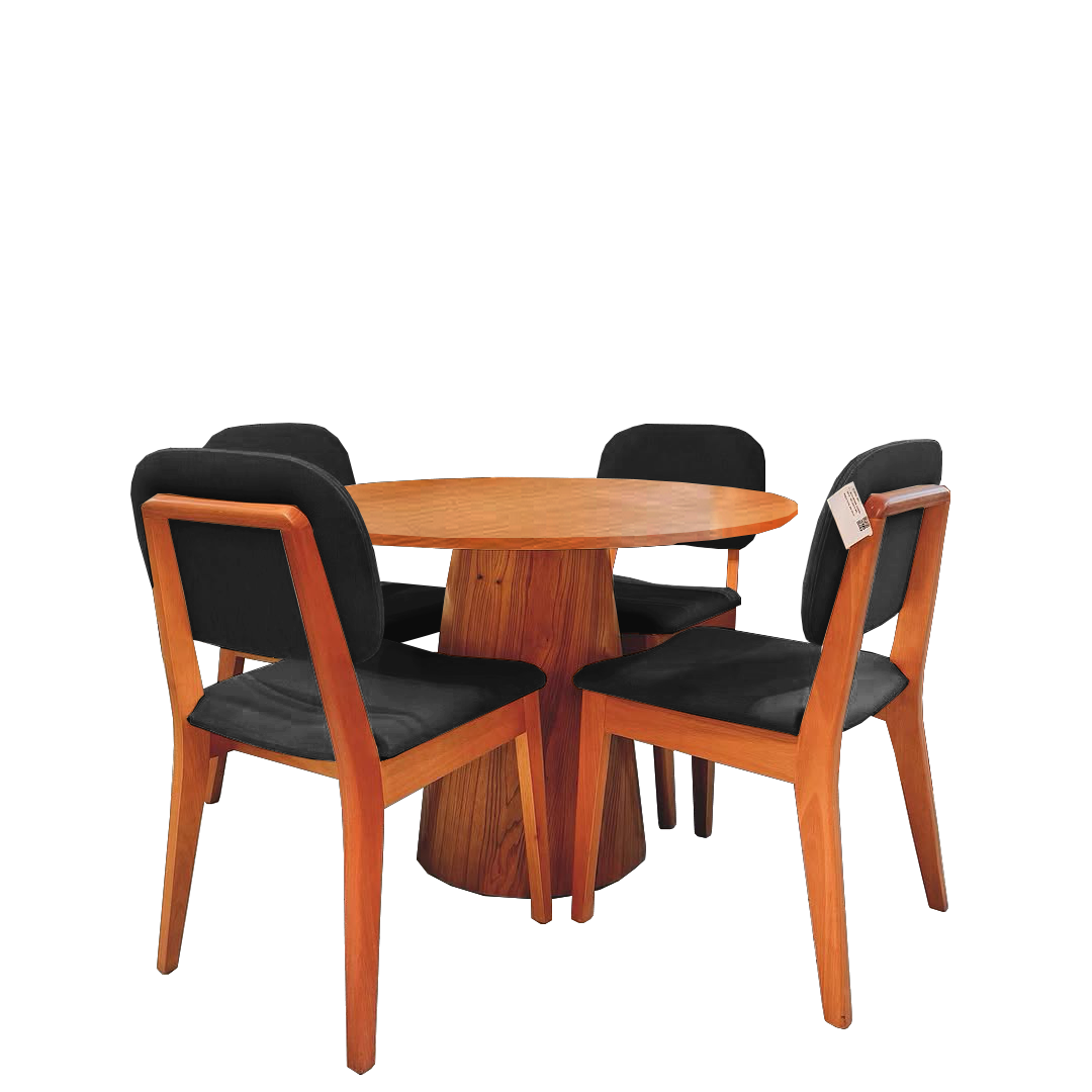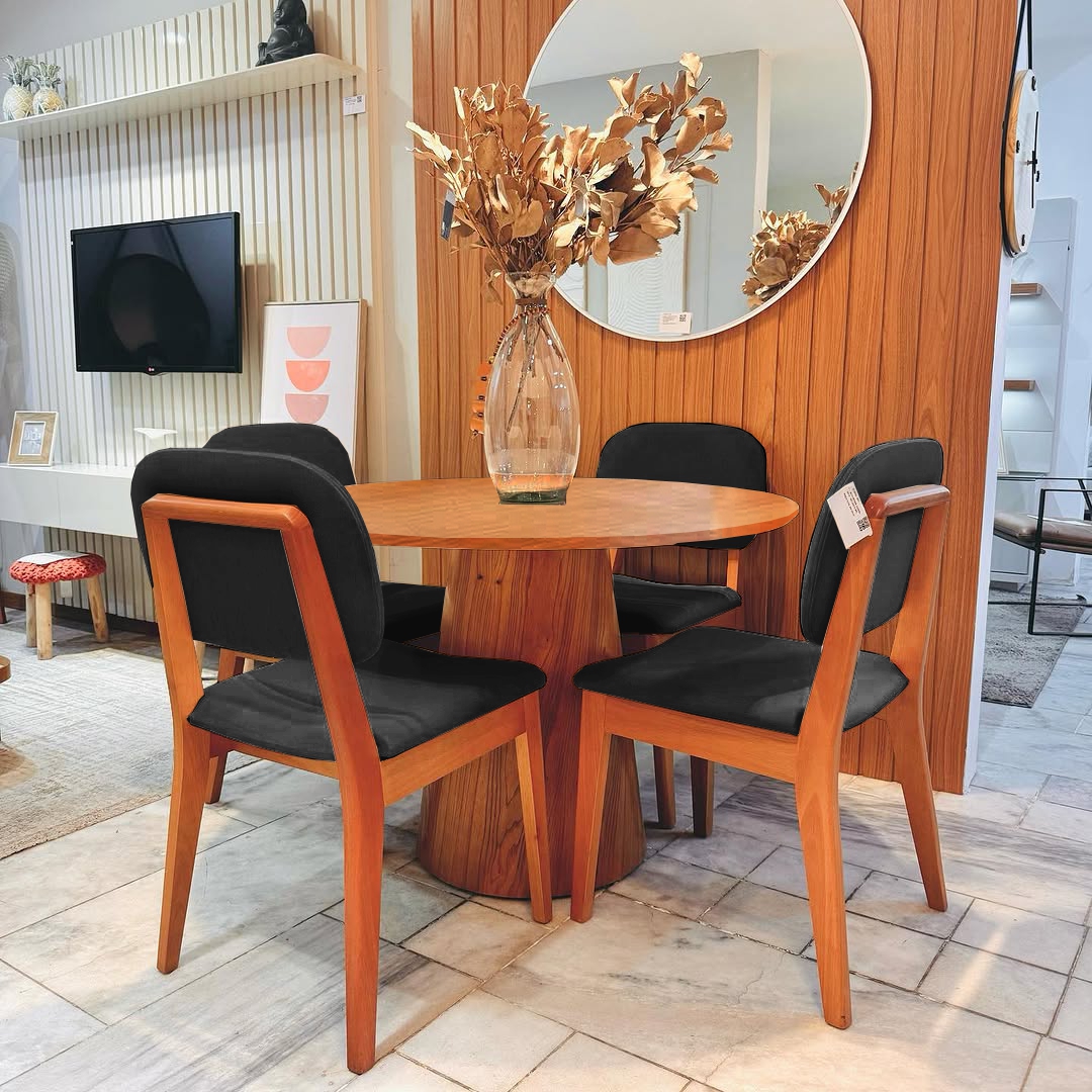 Mesa Redonda Malva 110 Mel com 4 Cadeiras Gaya Mel/Linho Preto 09 – J SILVA MÓVEIS