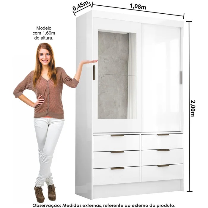 Modulado 4 Portas + Guarda-Roupa 2 Portas Sevilha Plus(Com espelho) Branco – CARIOCA MÓVEIS