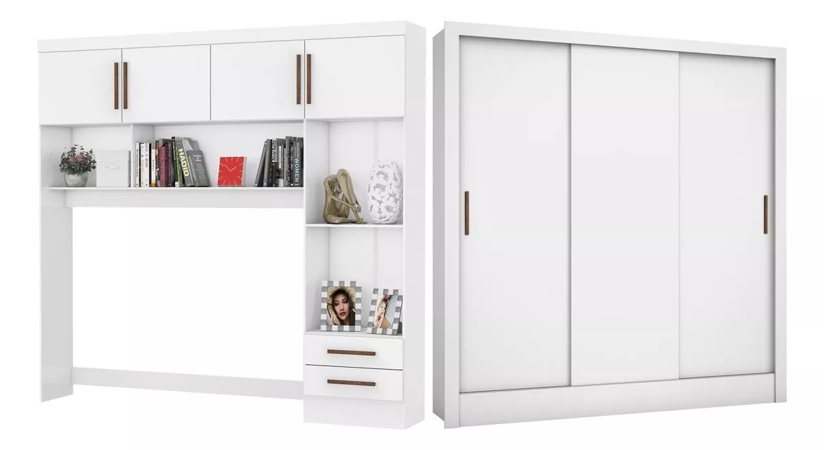 Modulado 4 Portas + Guarda-Roupa 3 Portas Dubai/Santiago /Branco – CARIOCA MÓVEIS